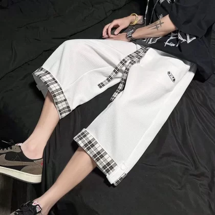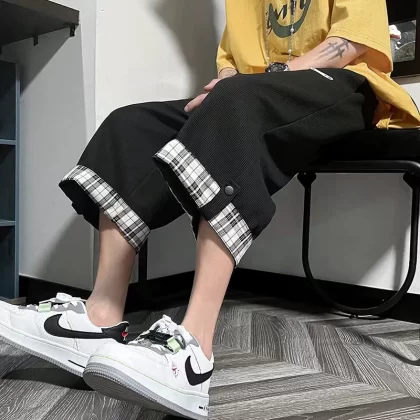 | nameOriginal | Loose large size rolled hem plaid over-the-knee thin cropped pants |