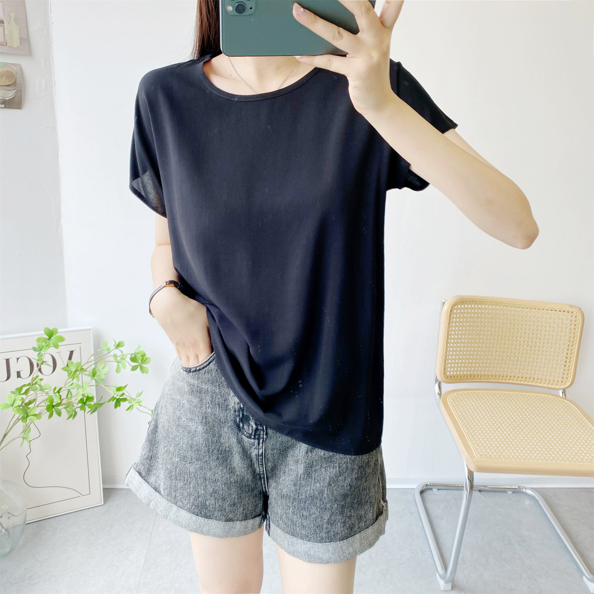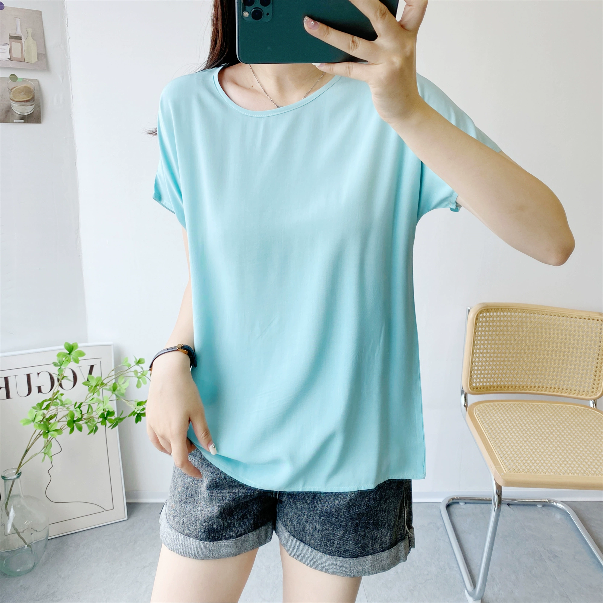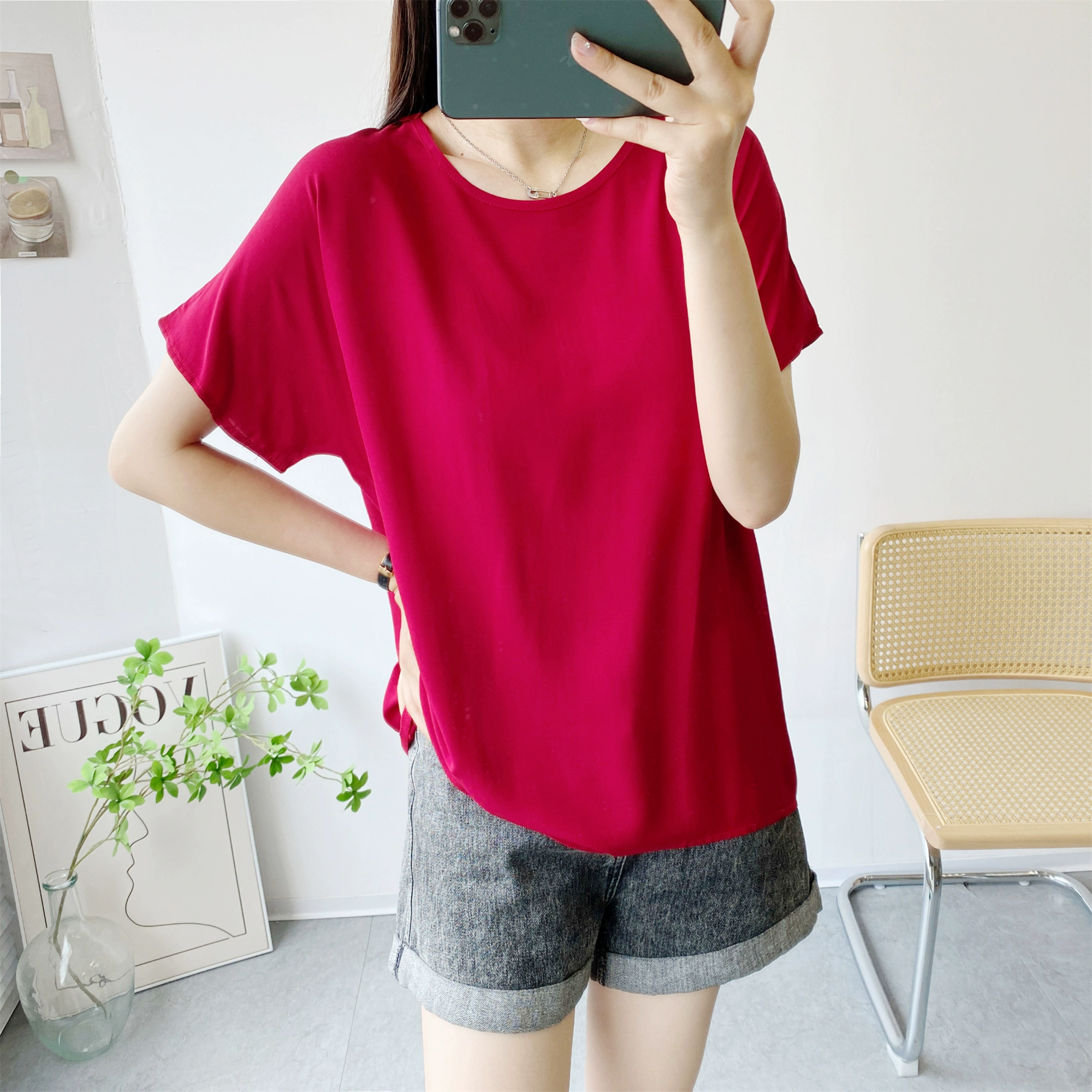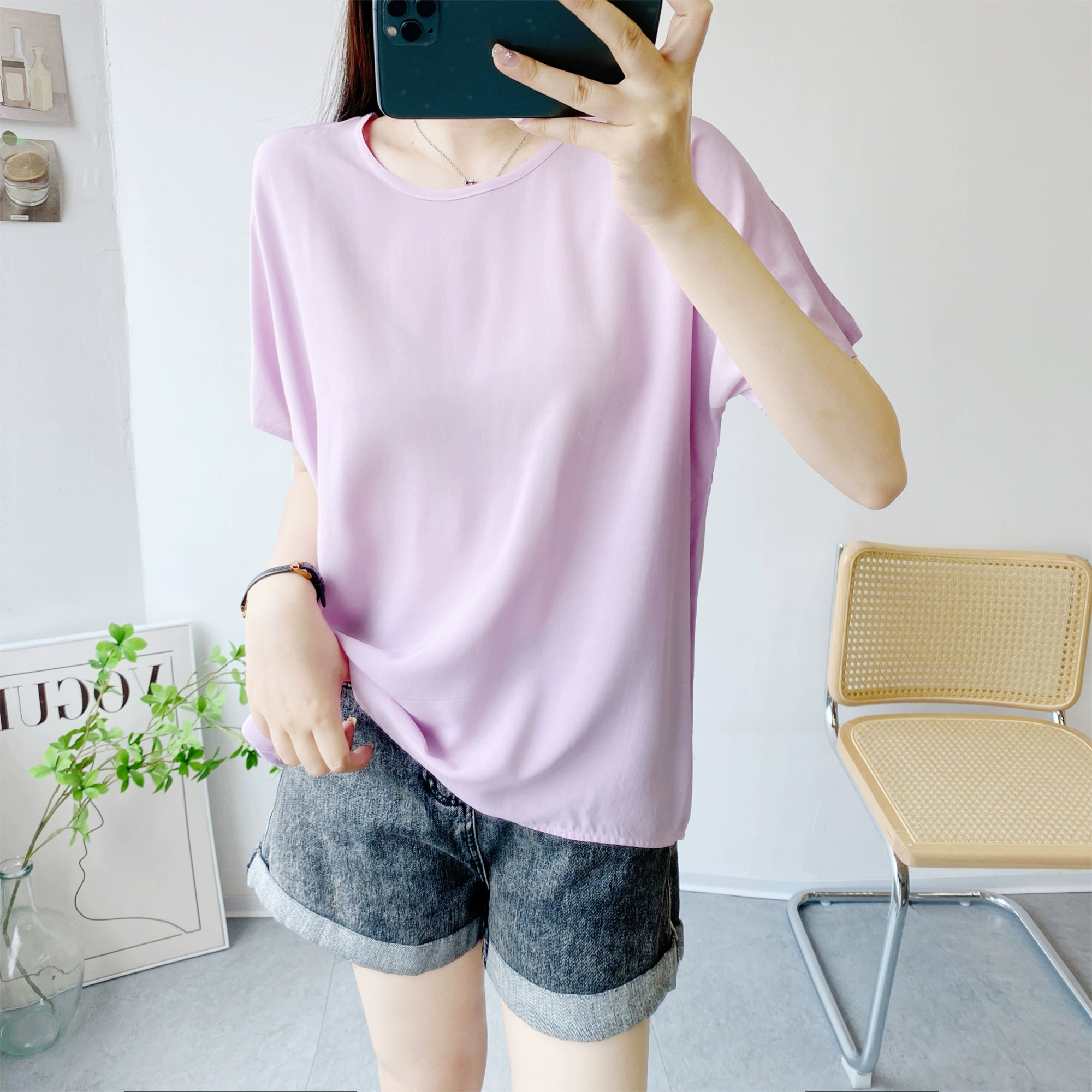 | nameOriginal | Loose large size short sleeve thin solid color top cotton silk |