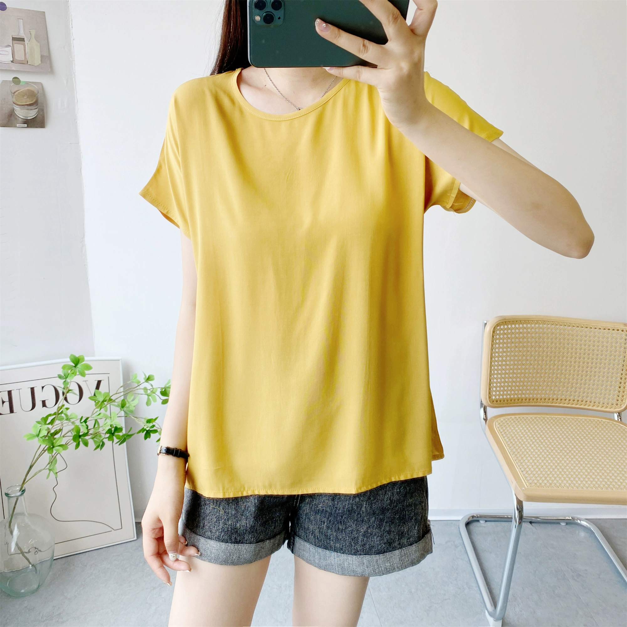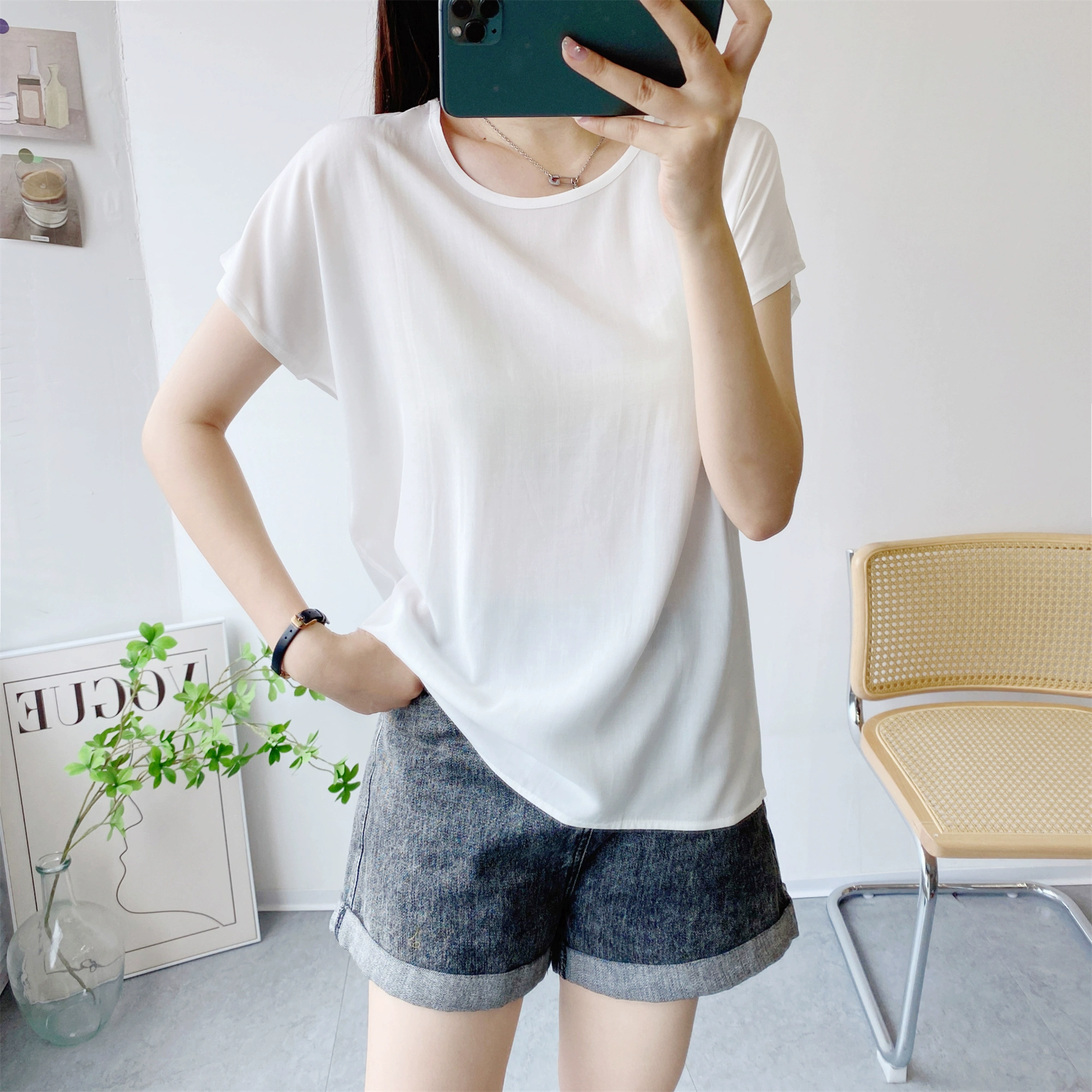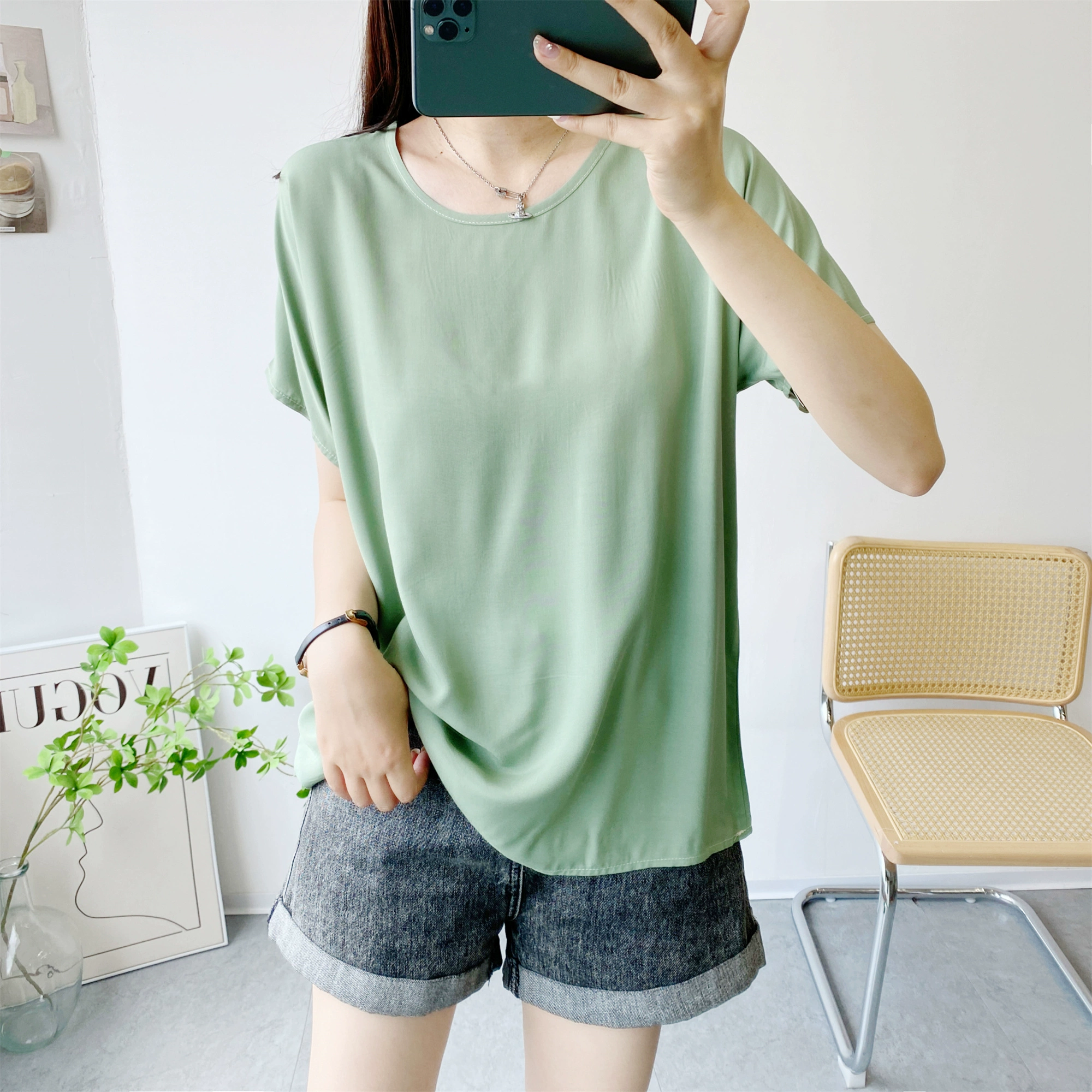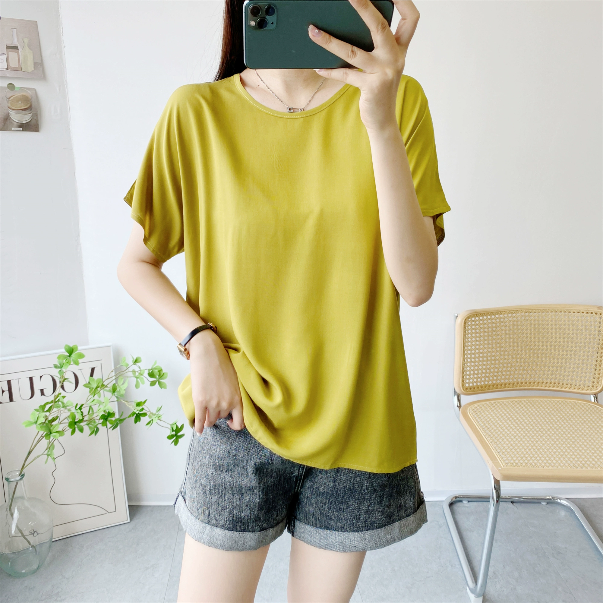 | nameOriginal | Loose large size short sleeve thin solid color top cotton silk |