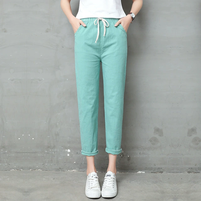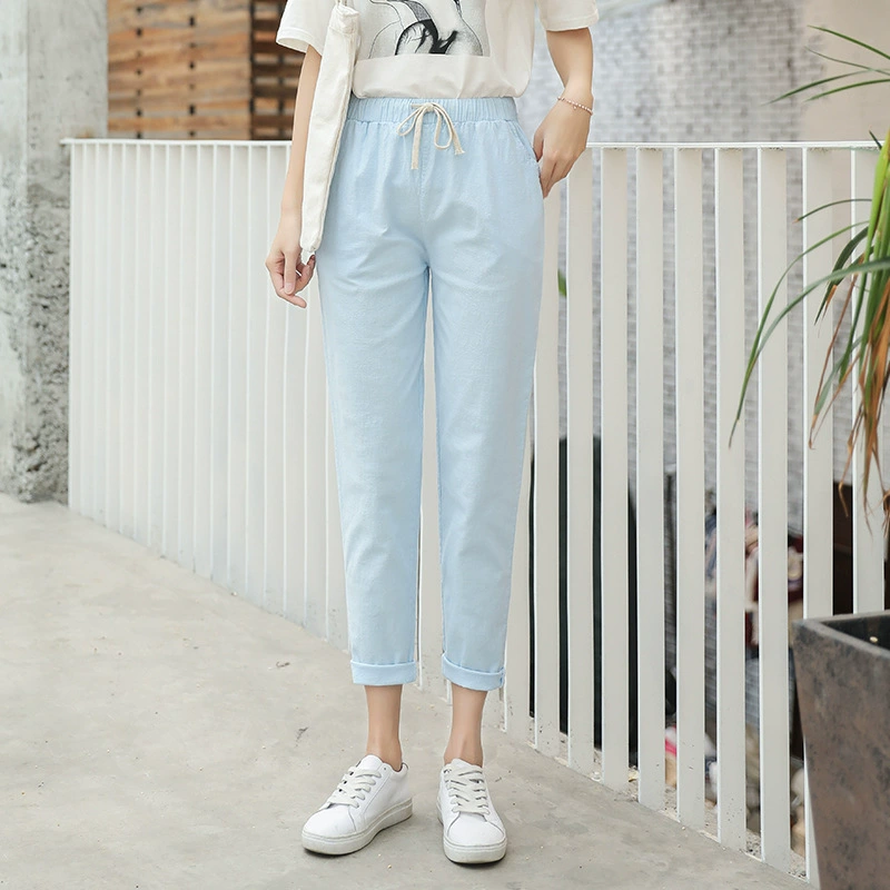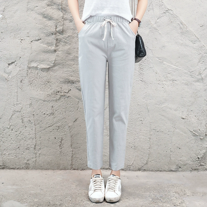 | nameOriginal | Loose large size thin solid color cropped harem cotton and linen pants |