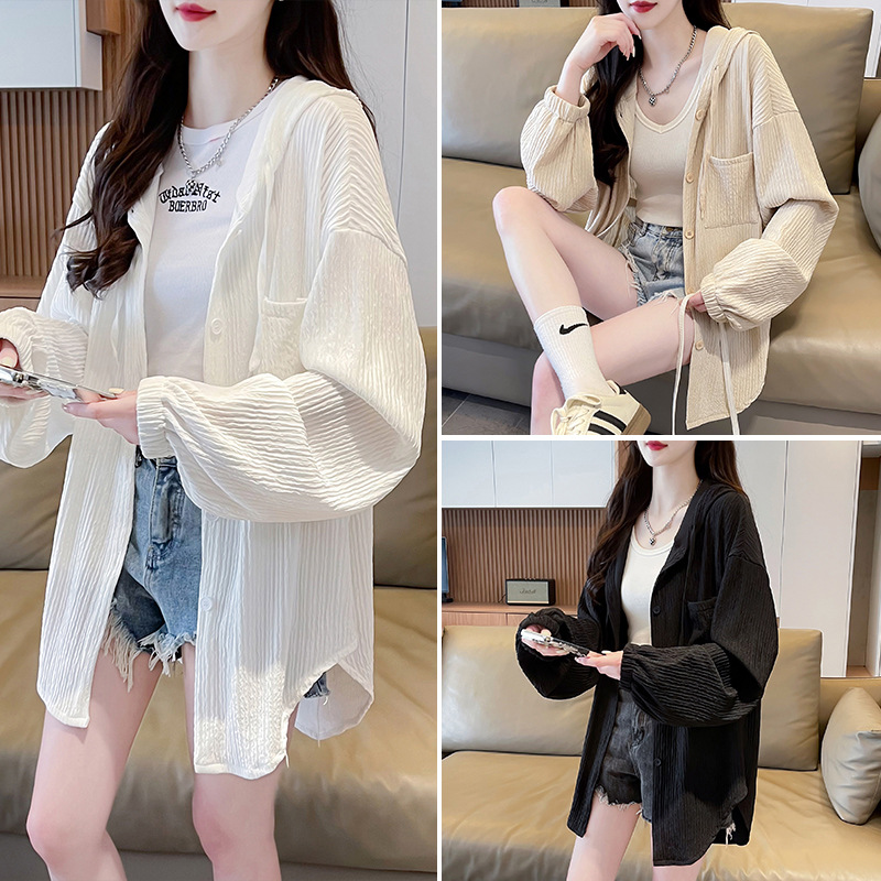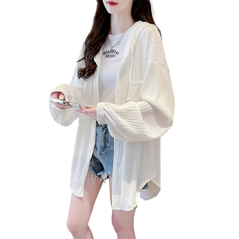 | nameOriginal | Loose Lazy Style Hooded Jacket Women's 2024 Spring and Summer New Sunscreen Shirt White Elegant Top Thin Sunscreen Shirt |