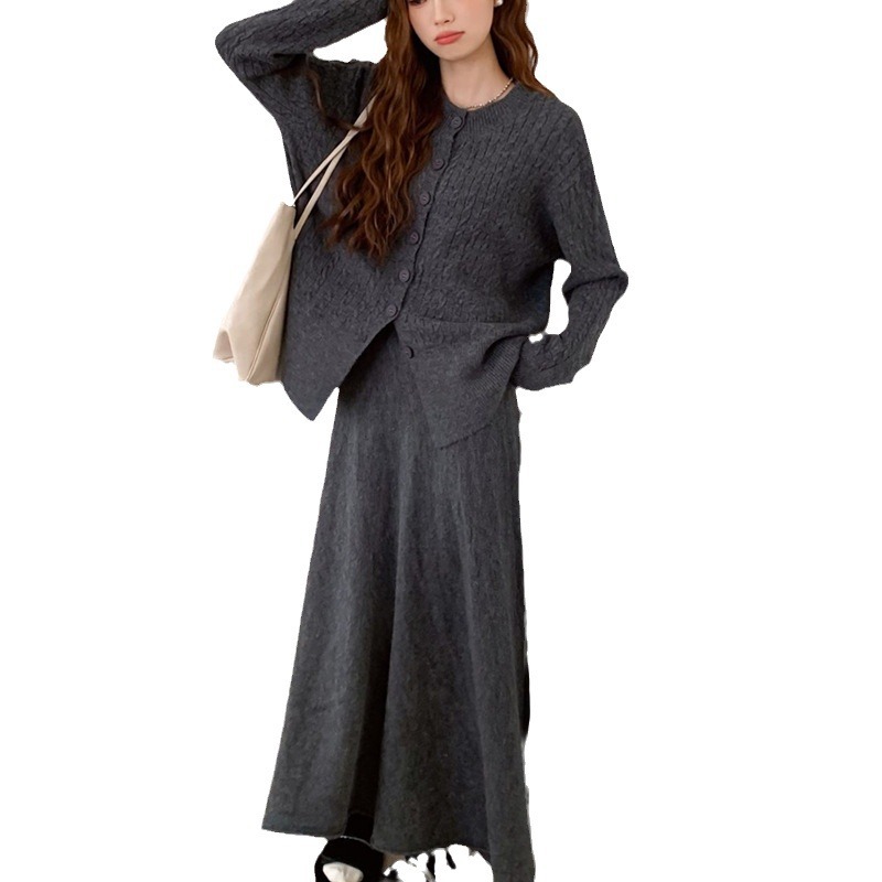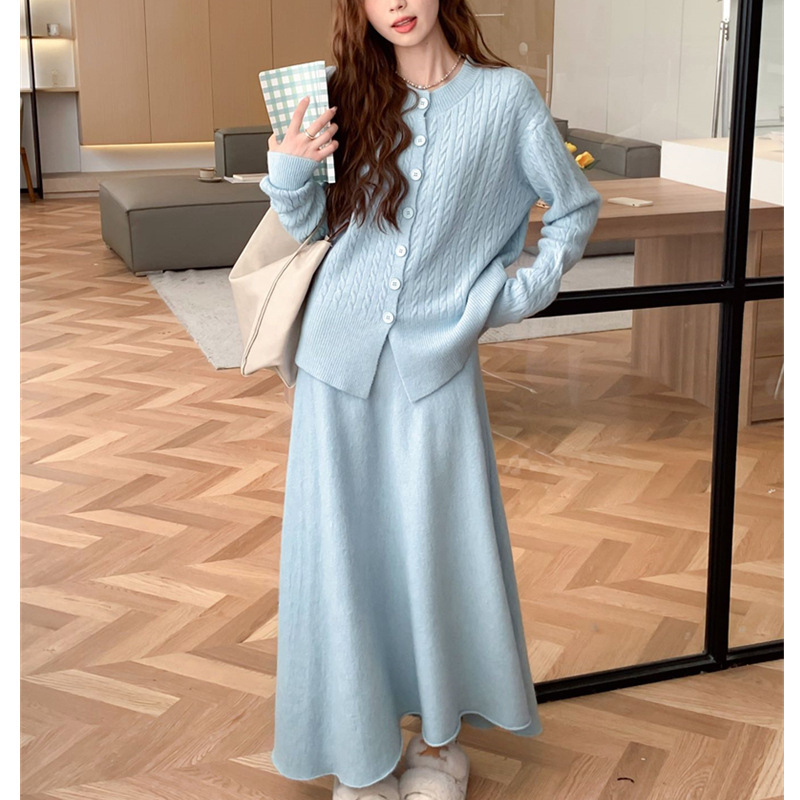 | nameOriginal | Loose Lazy Style Knitted suit Women's plus size for Chubby Girls Loose Gentle Style Top Skirt Slimming Two-piece Set |