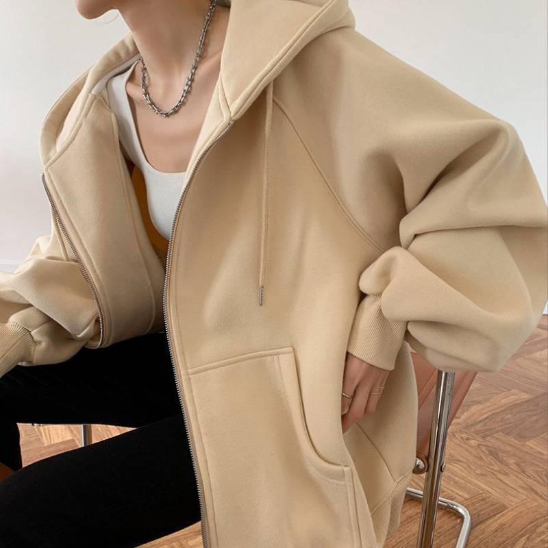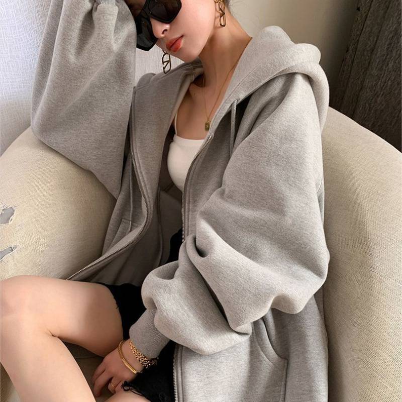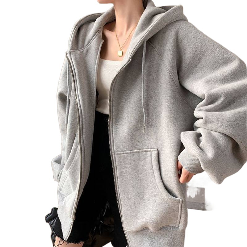 Loose lazy style sports sweater coat women's autumn and winter gray fleece-lined thick baseball uniform 2023 new women's Cotton
