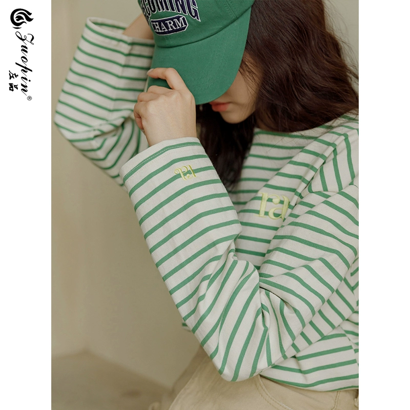 | nameOriginal | Loose long sleeve striped letter embroidered thin T-shirt |