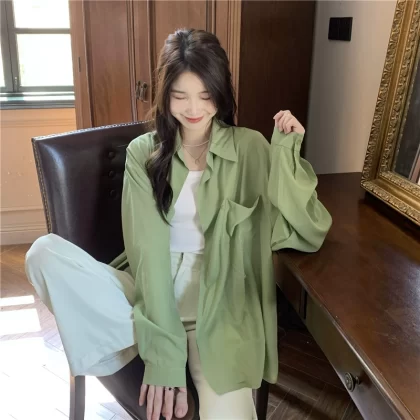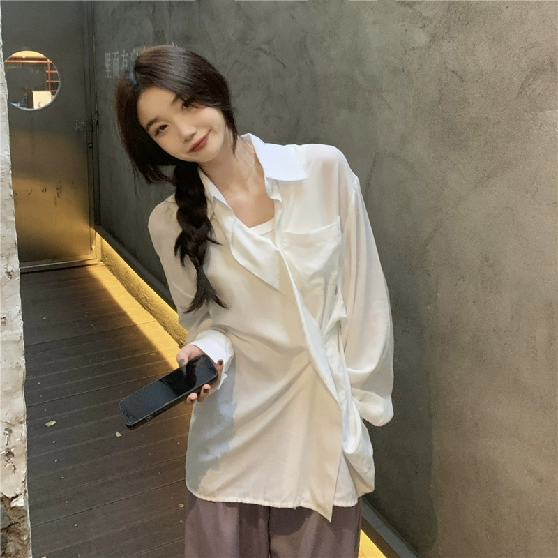 Loose long-sleeved shirt with diagonal buttons and unique design