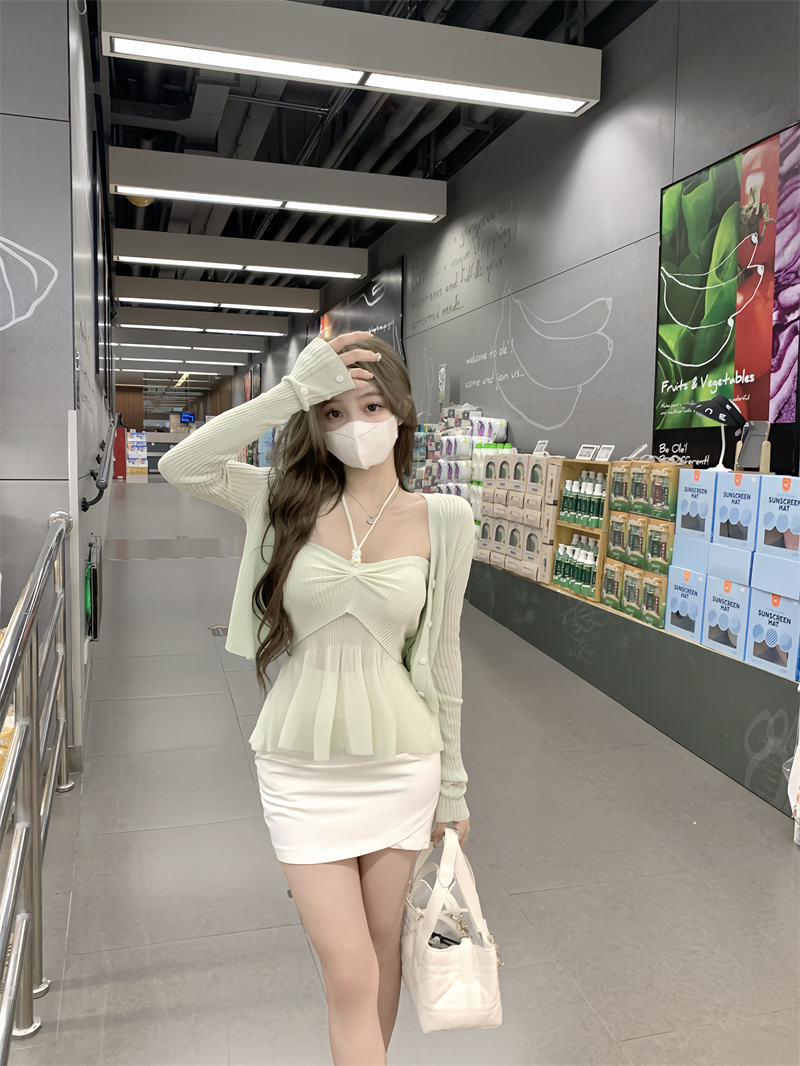 | nameOriginal | Loose long-sleeved women's summer pleated halter neck knitted cardigan |