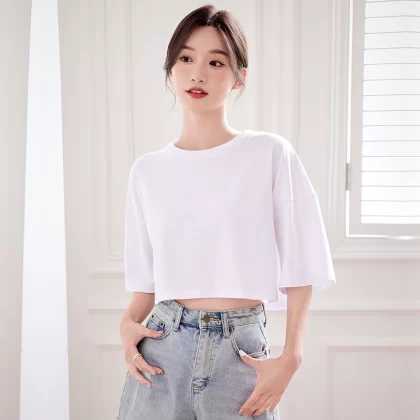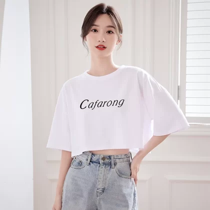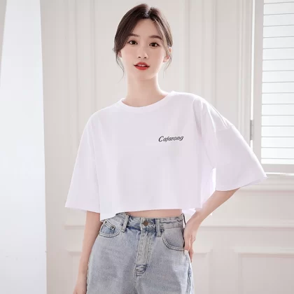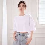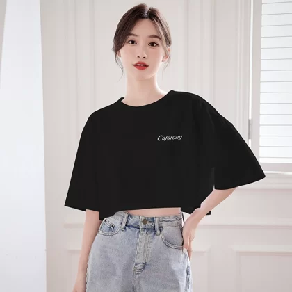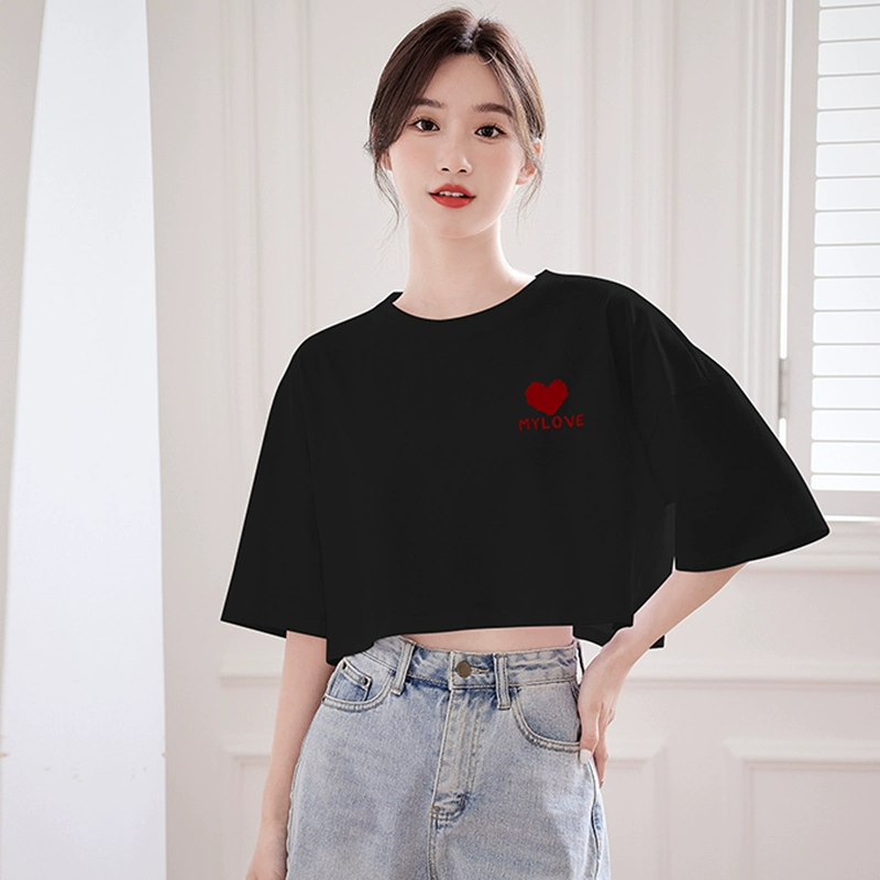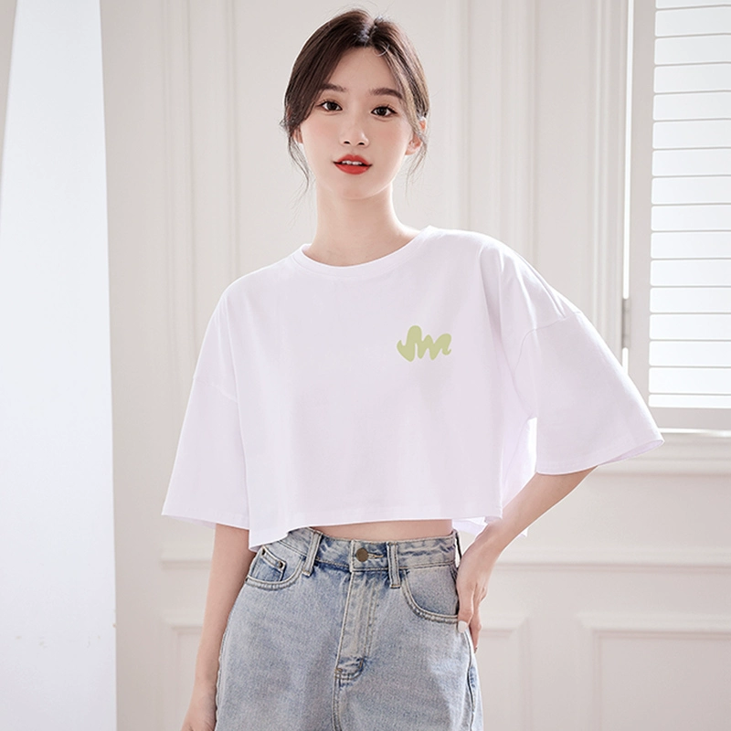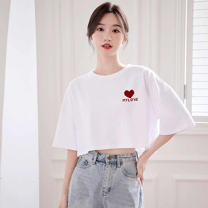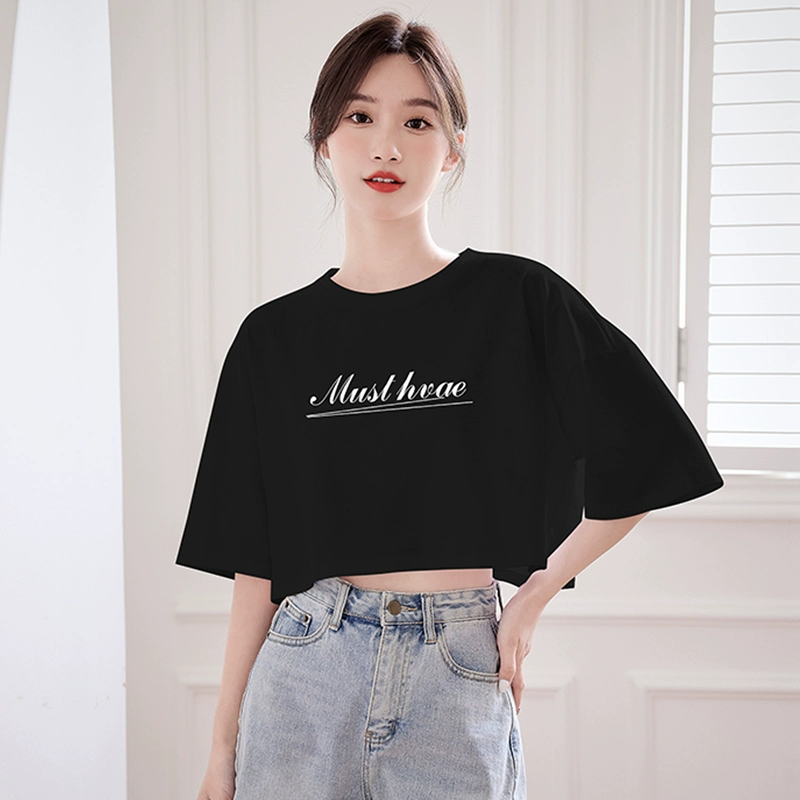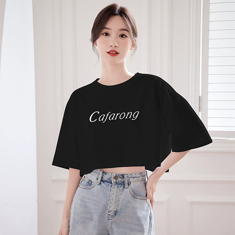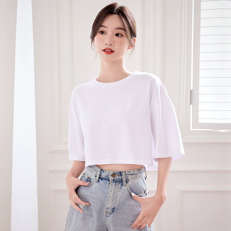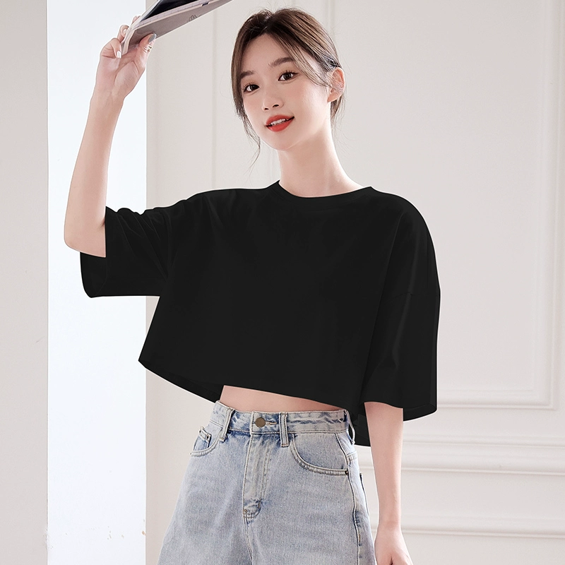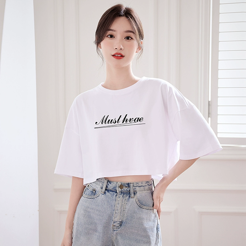 Loose navel-baring solid color casual top short-sleeved T-shirt