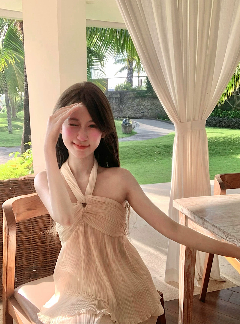 | nameOriginal | Loose pleated sleeveless design backless halter neck strap |