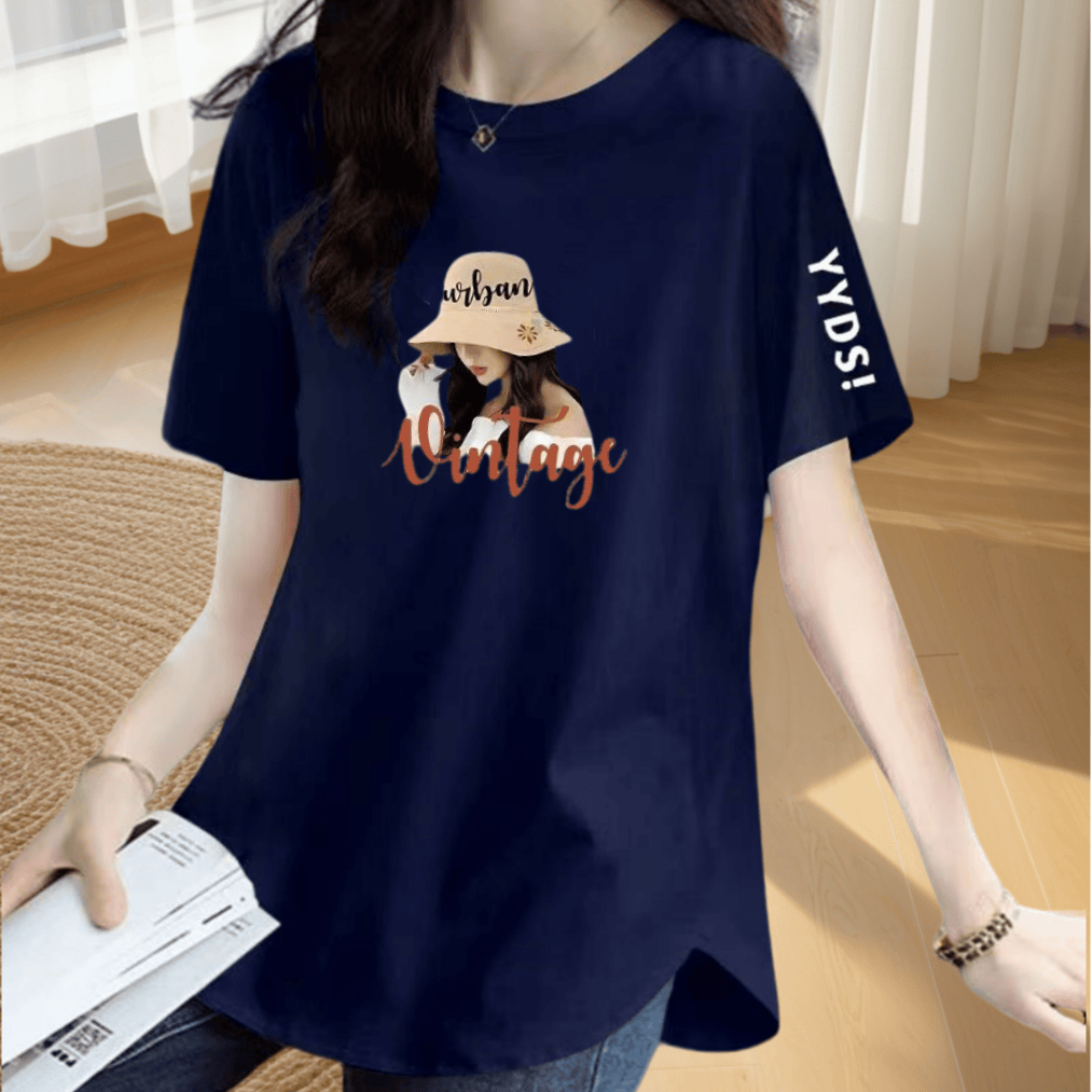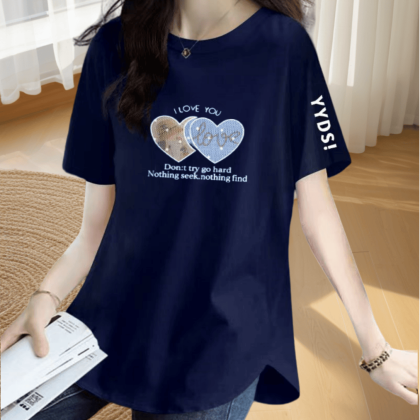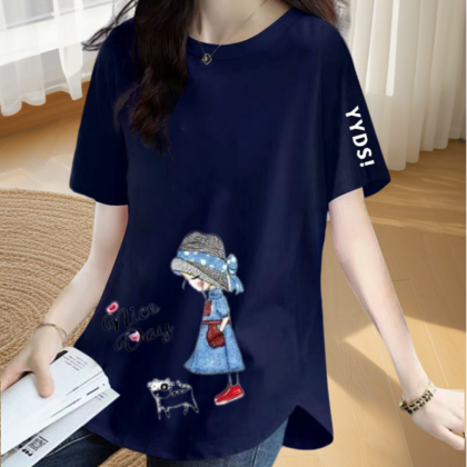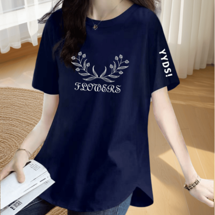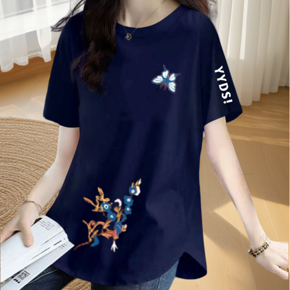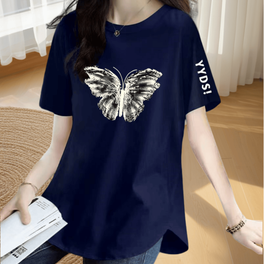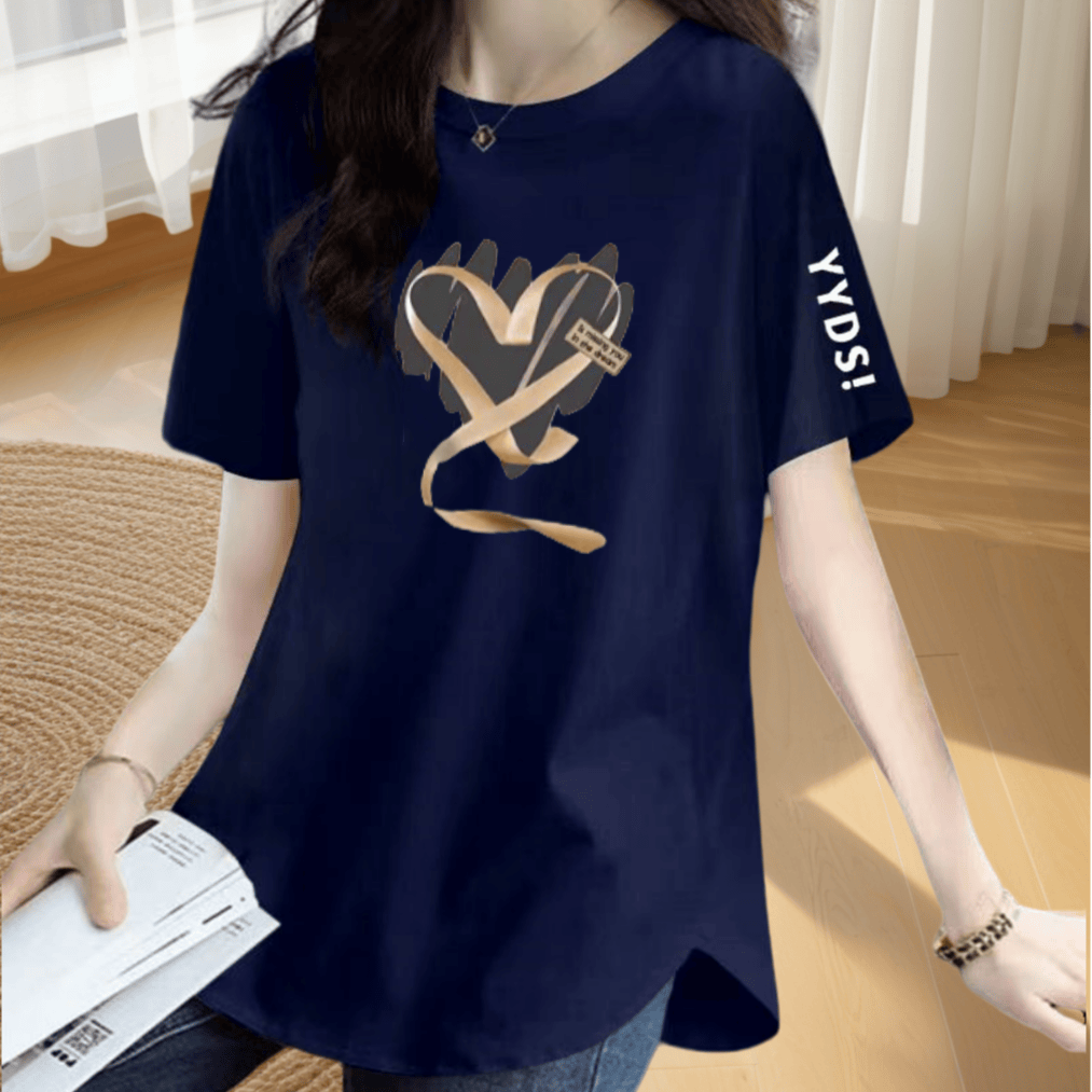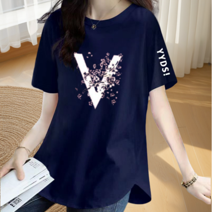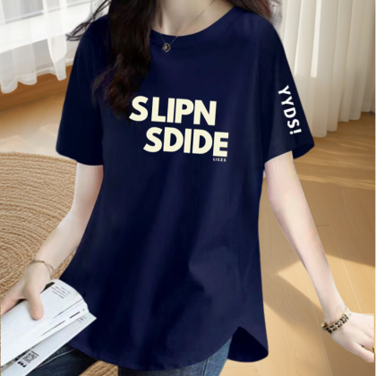 | nameOriginal | Loose printed slimming short-sleeved T-shirt with irregular slits |