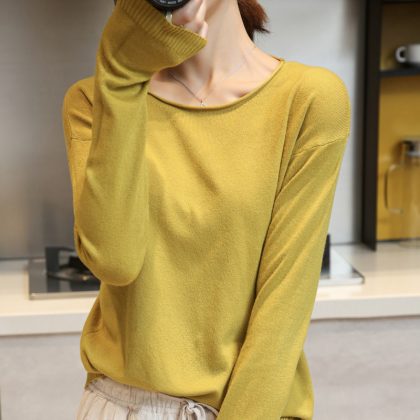 | nameOriginal | Loose round neck pullover knitted sweater women's loose plus size student slimming solid color V-neck thin bottoming shirt top |