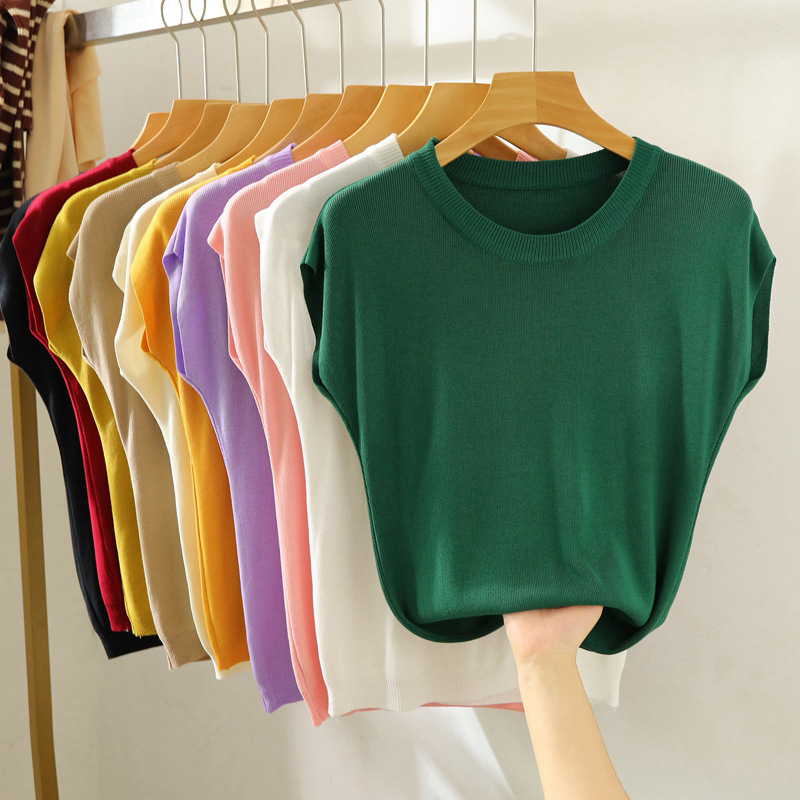 | nameOriginal | Loose Short-sleeved Knitted Shirt Women's Summer Thin All-match T-shirt Stychy Base Shirt Small Flying Sleeve Round Neck Ice Silk Top |