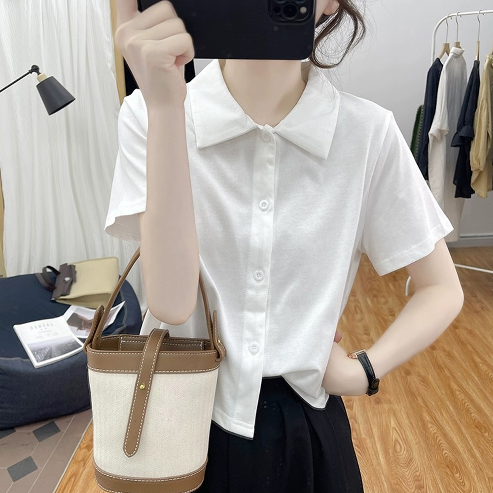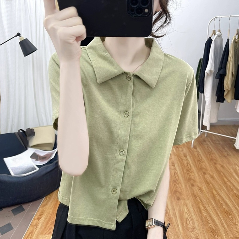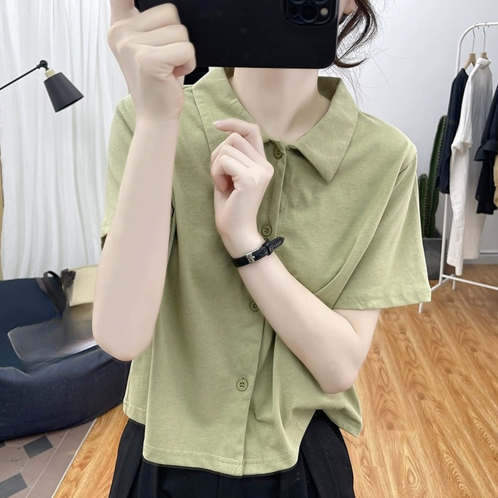 | nameOriginal | Loose Short-sleeved Polo Shirt Women's Summer New Korean Style Loose Thin Top Retro Lapel T-shirt Cardigan |
