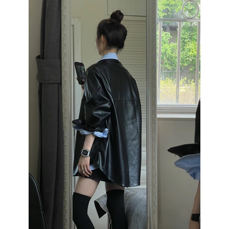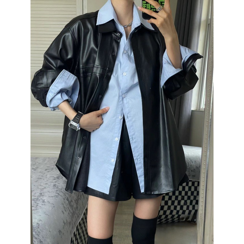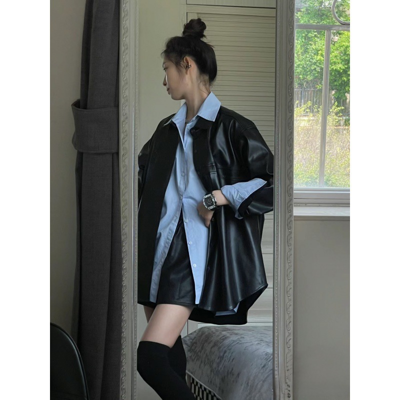 | nameOriginal | Loose Slim Biker Style PU Leather Jacket Casual Wide Leg Slim Leather Pants Loose Casual Sun Protection Shirt Three-Piece Set |
