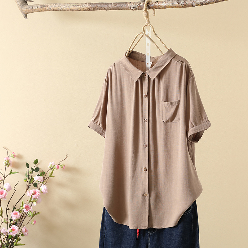 Loose small lapel short-sleeved shirt summer new simple Bai match classic loose slimming solid color top women's multi-color
