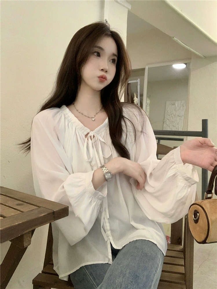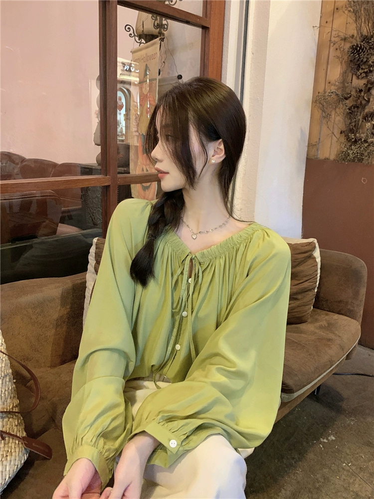 | nameOriginal | Loose spring and autumn bottoming niche long-sleeved green babydoll shirt |