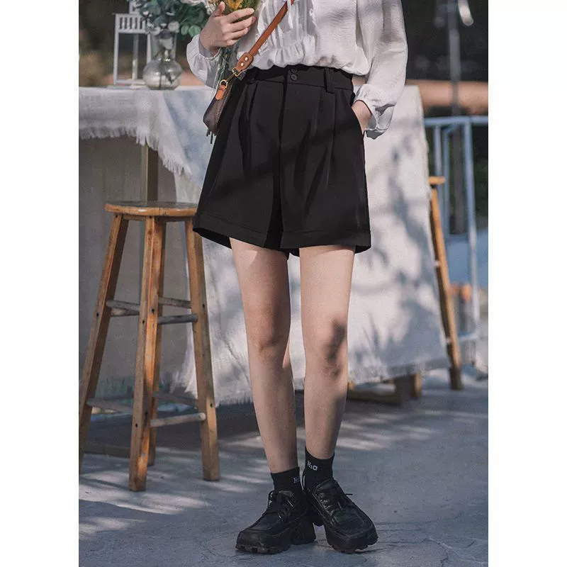 | nameOriginal | Loose suit shorts for women 2024 summer Korean style new a-line high-waisted wide-leg pants versatile rolled hem casual pants |