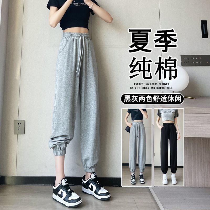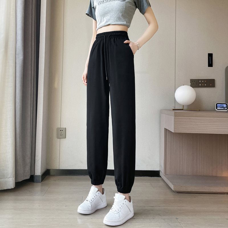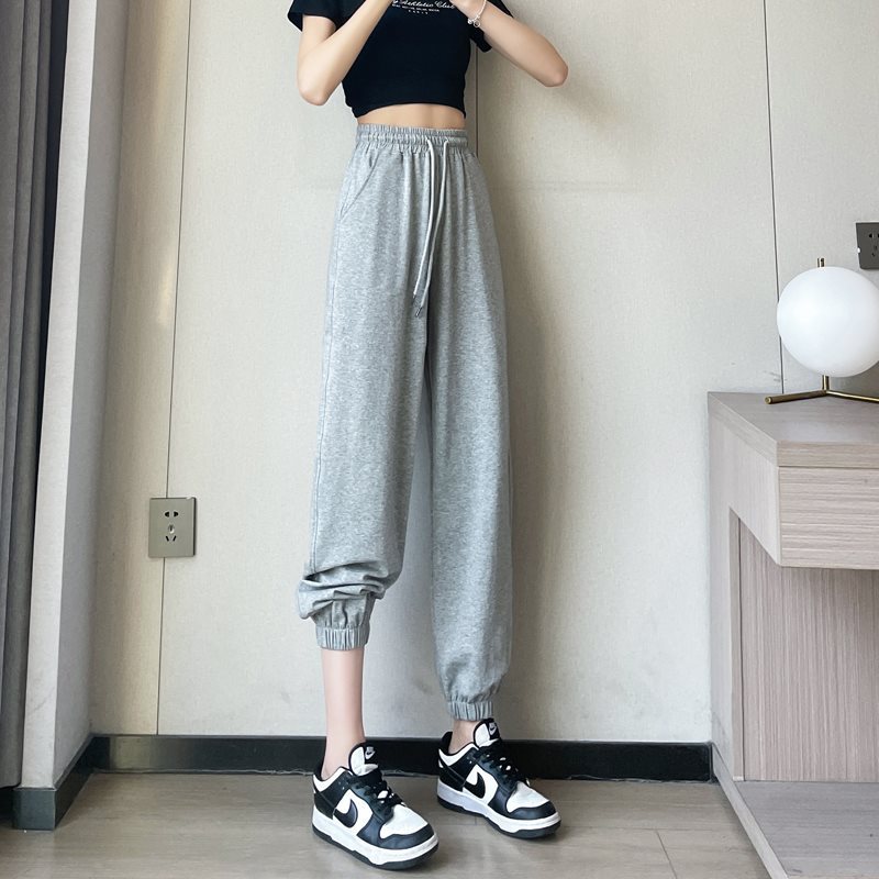 Loose Trousers Loose Sports Pants Casual Pants Small Nine-point Spring and Autumn Sweatpants Women's Thin Summer Chenille