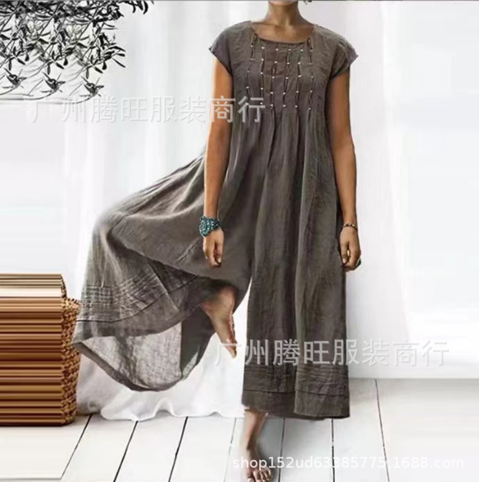 | nameOriginal | Loose Wide-leg Trousers European and American-style in stock Cotton and Linen Short-sleeve Pleated |