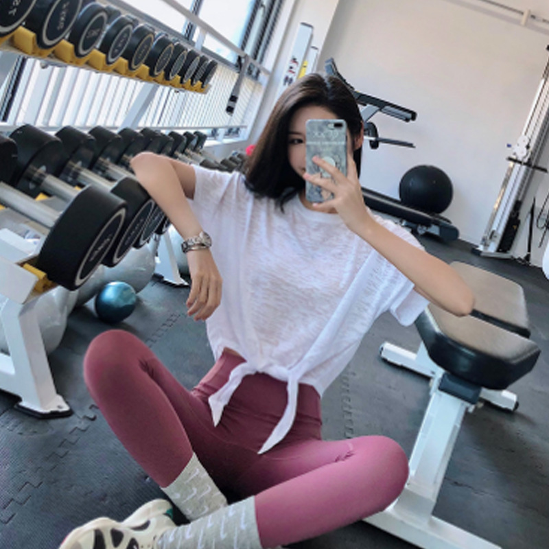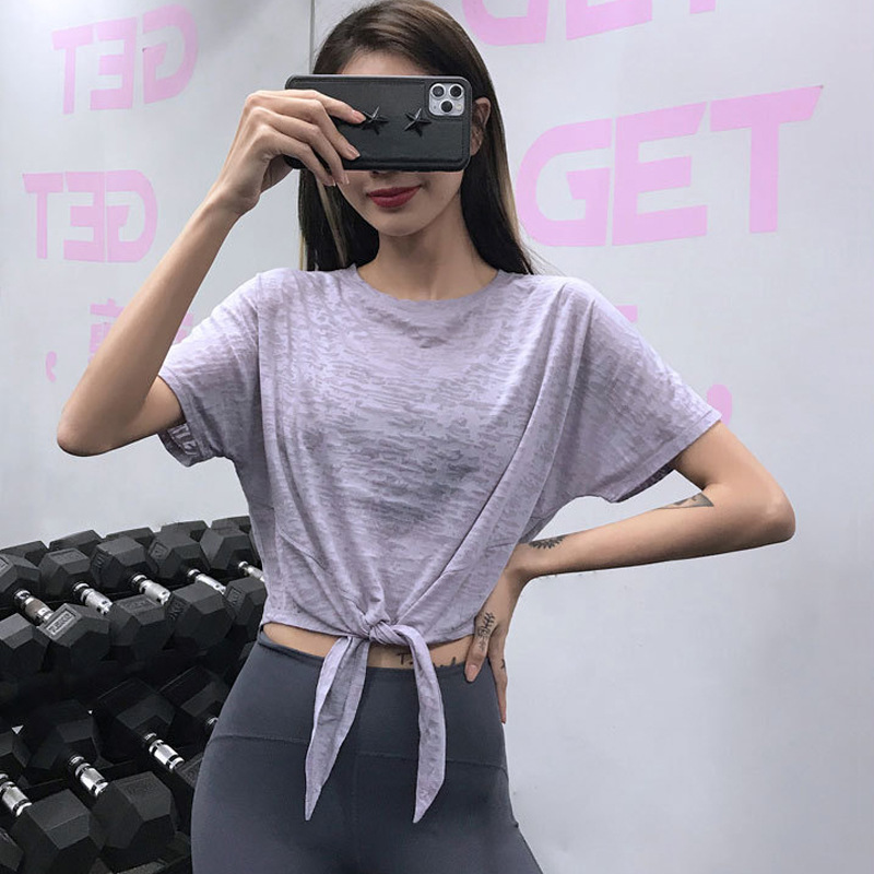 | nameOriginal | Loose yoga clothes top women's quick-drying breathable sports fitness clothes short sleeve new style burning flower knotted training running t |
