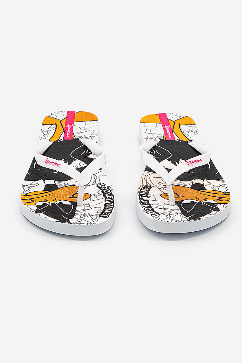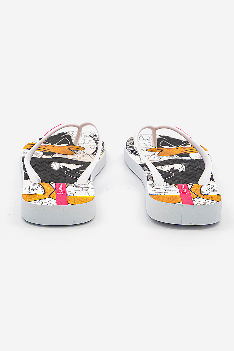 | sub_Categories | Shoes, Sandals & Slippers, women loovely tunes print slip on slippers white and black combo |