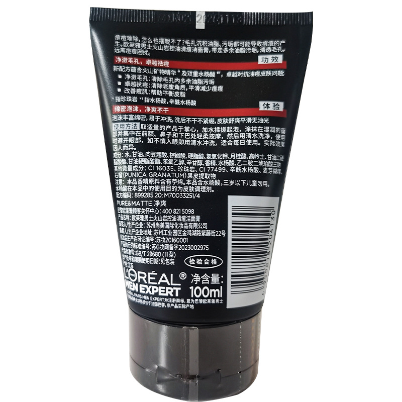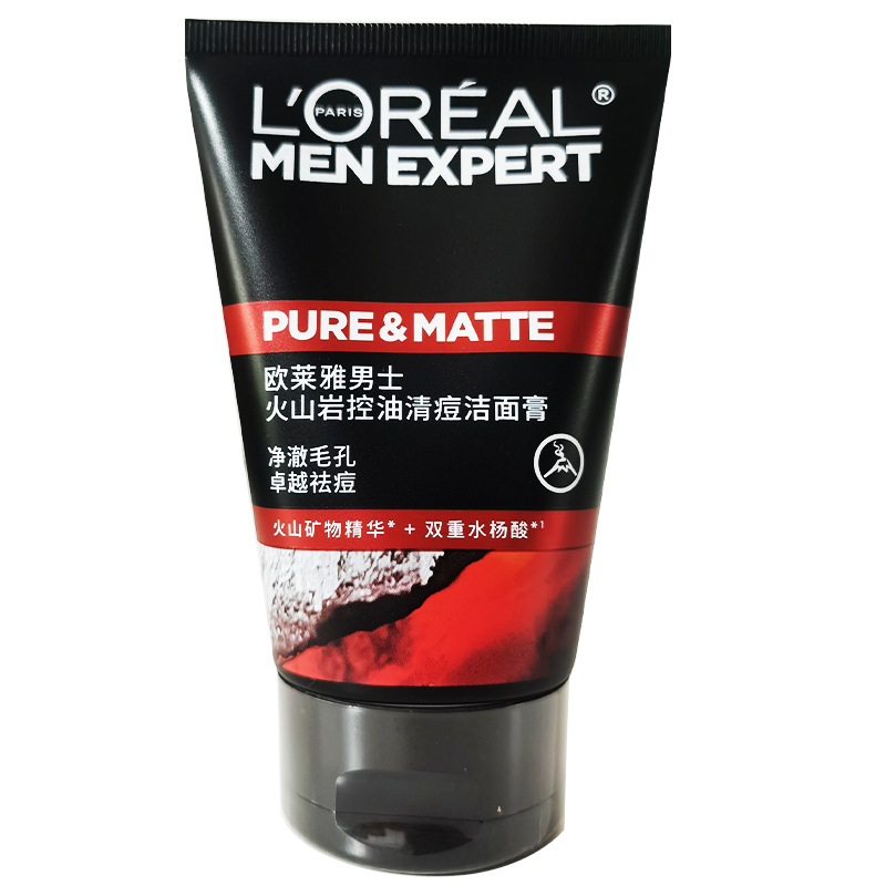 L'Oreal Men's Oil Control Carbon Cool Anti-blackhead Cleansing Cream 100 Volcanic Rock Anti-acne Deep Purification Official genuine goods