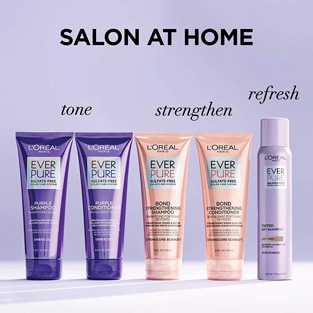 | nameOriginal | L'Oréal Paris Hair Care EverPure Sulfate Free Brass Toning Purple Shampoo for Blonde, Bleached, Silver, or Brown Highlighted Hair, 6.8 Fl. Oz |