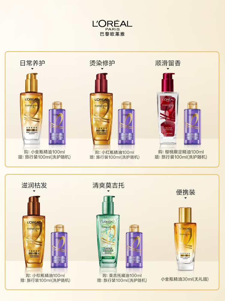 | nameOriginal | L'Oreal small gold bottle hair care essential oil hair oil improves anti-frizz, dry and dry hair, smoothes and perms damaged hair care |