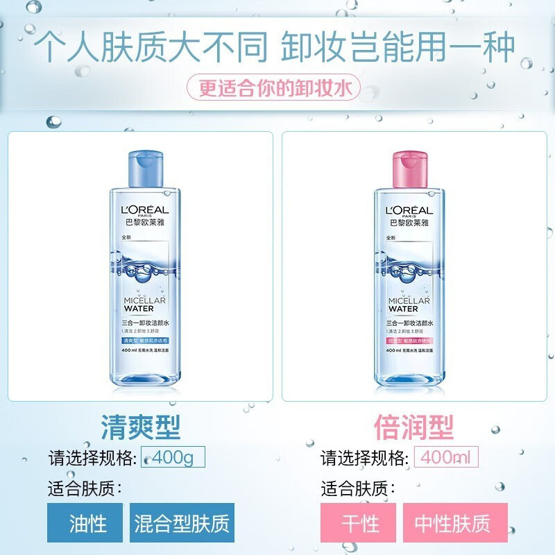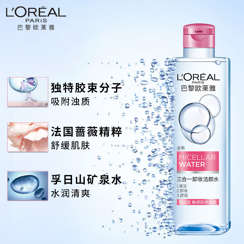 | nameOriginal | L'Oreal Three-in-One Makeup Remover Cleansing Water Double Moisturizing Facial Makeup Remover does not stimulate mild, clean and refreshing generation |