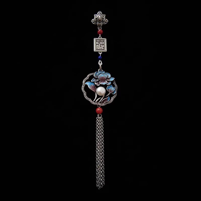 | nameOriginal | [Lotus Pond Moonlight] Original design s925 sterling silver cheongsam placket pendant tassel natural pearl Hanfu accessories |