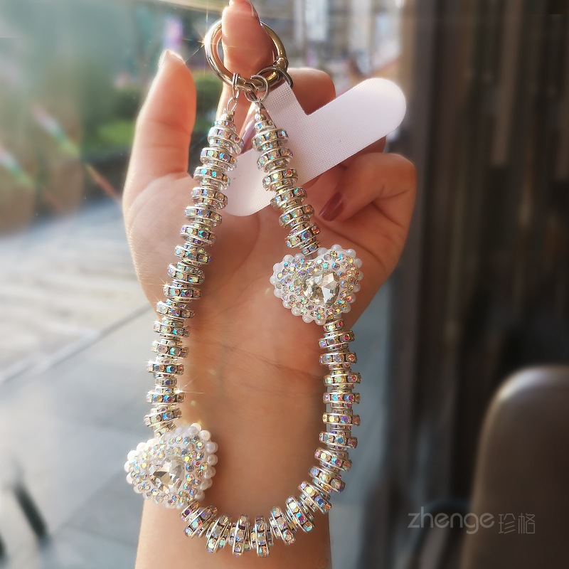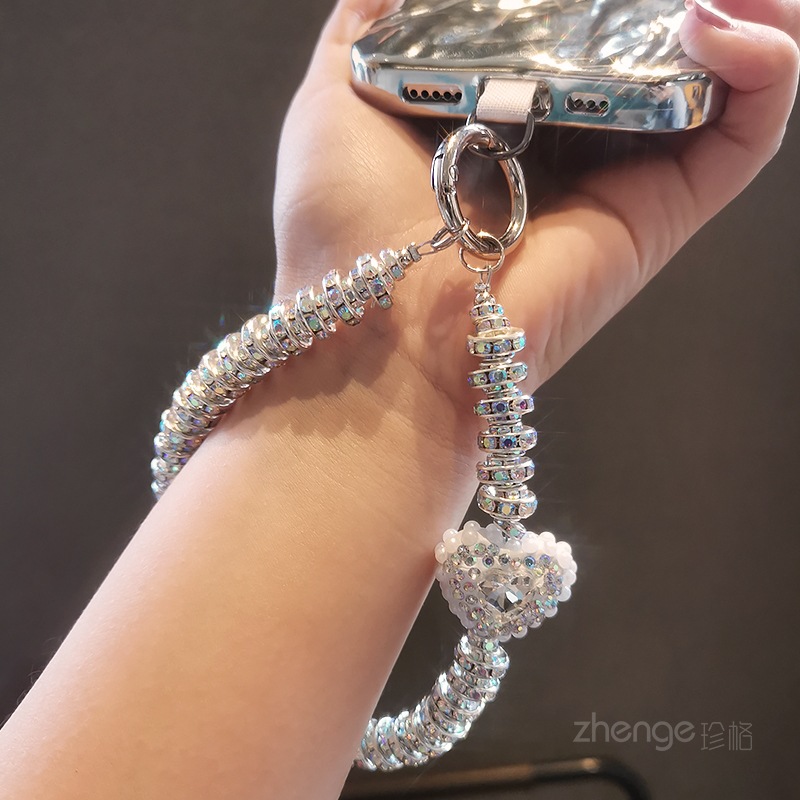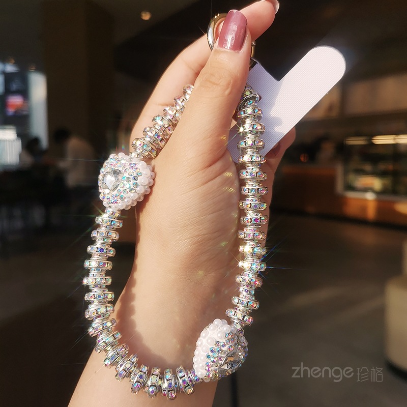 Love Gem Rhinestone Mobile Phone Chain Women's Ins Fashion Chanel Style Portable Wrist Hanging Accessories Short Mobile Phone Lanyard