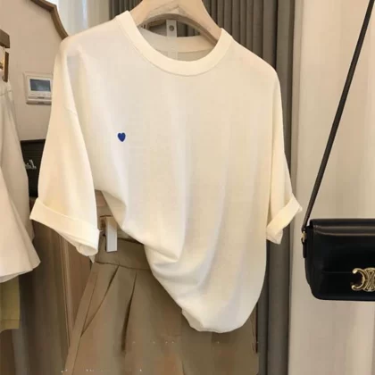 Love Short Sleeve T-Shirt Women’s European Brand Embroidery