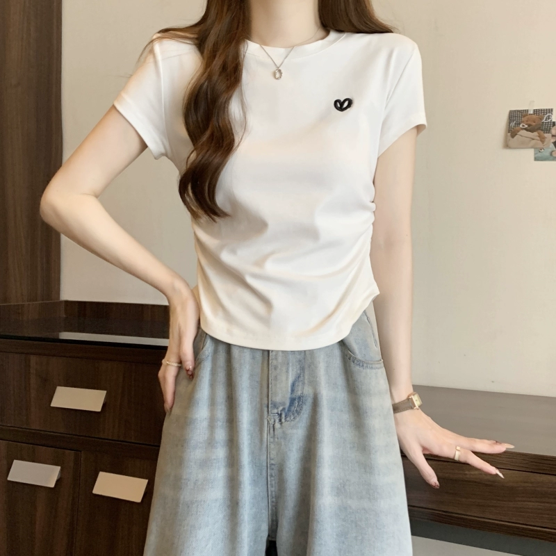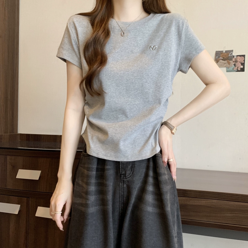 Love Spring and Summer Korean Style Slim Fit Embroidered Short Sleeves