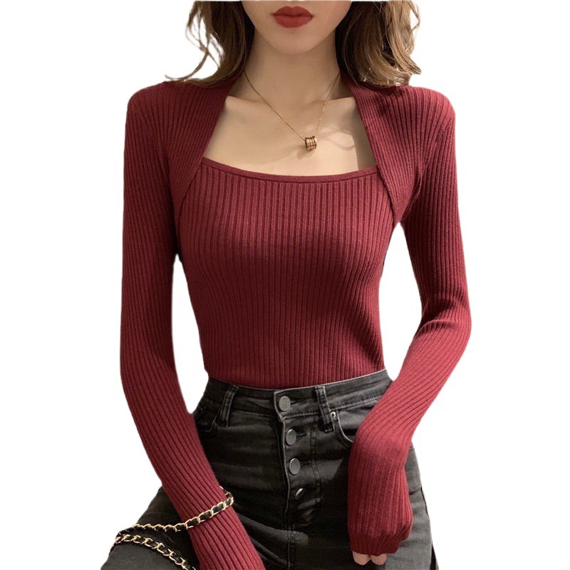 | nameOriginal | Low collar bottoming women's autumn and winter new square collar long sleeve bottoming shirt sweater gentle style hot girl fake two-piece knitted top |