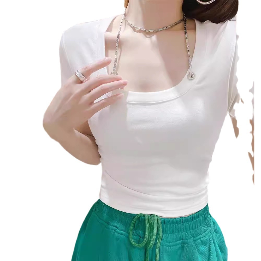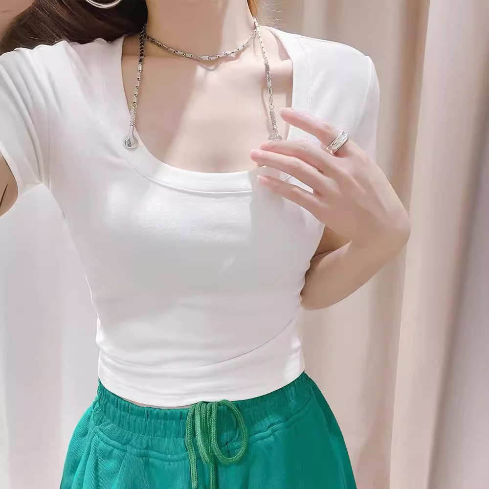 | nameOriginal | Low Collar Short-sleeved T-shirt Women's Summer 2024 New Shoulder Slim-fit Half-sleeved Simple Basic Solid Color All-match Top |