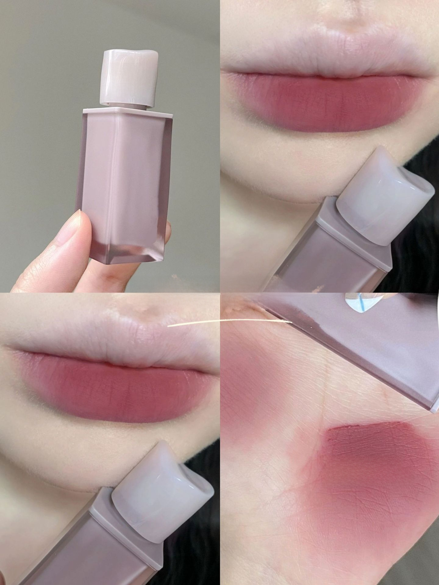 | nameOriginal | Low saturation nude milk tea ~ plain white lip glaze lipstick matte gray powder lip mud niche peach color parity |