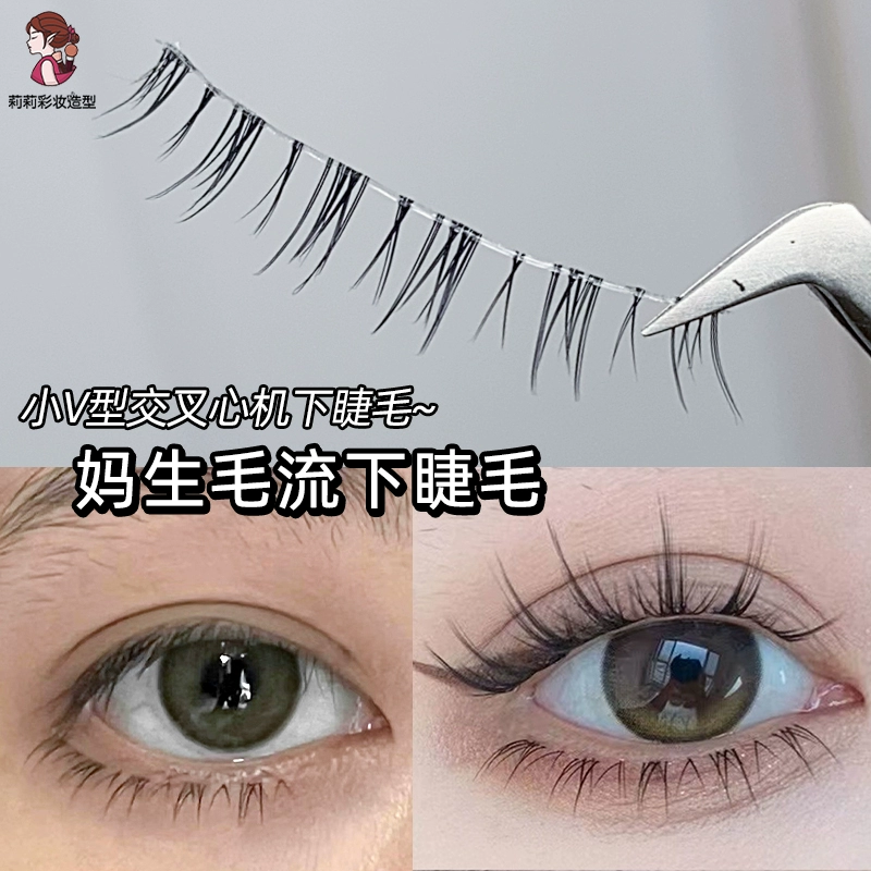 Lower eyelashes one-piece short natural simulated small V-shaped cross ultra-thin transparent stem nude makeup Austrian eyelashes false eyelashes