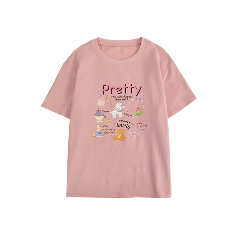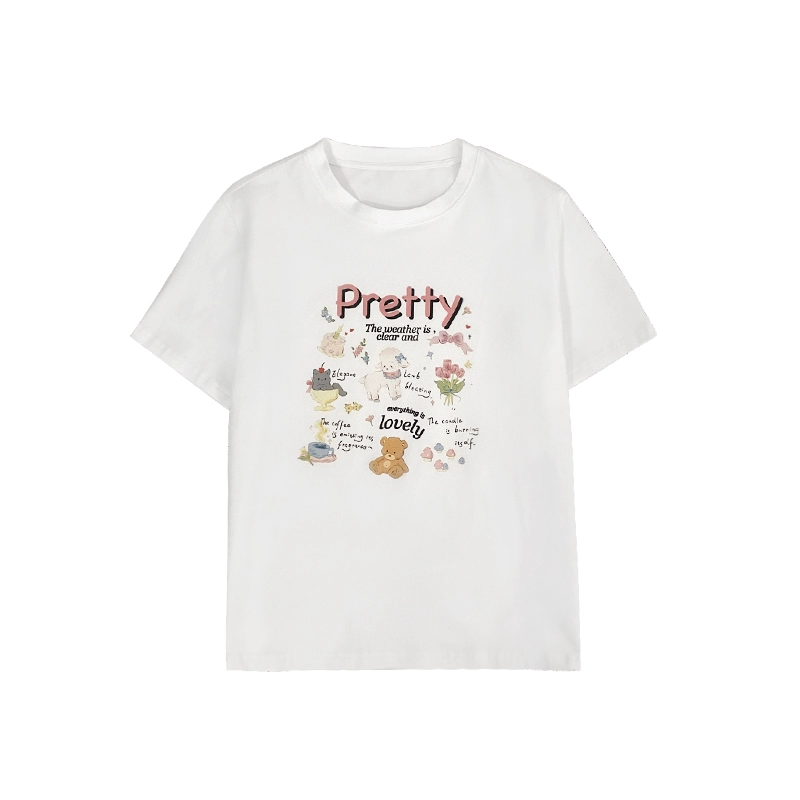 Loyal Dog Xiaoba White Round Neck Short Sleeve Cotton Cartoon
