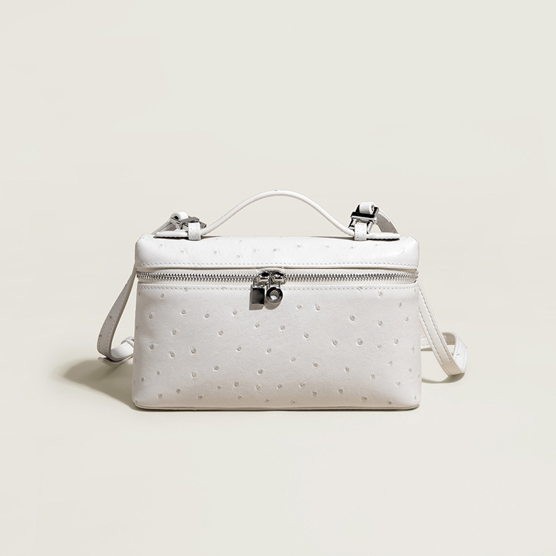 LP19 Ostrich Cowhide Bag 2024 New Crossbody Bag Genuine Leather Women's Bag Fashion Handbag Women's Lunch Box Bag