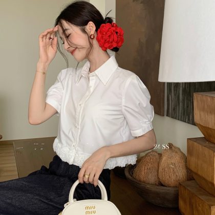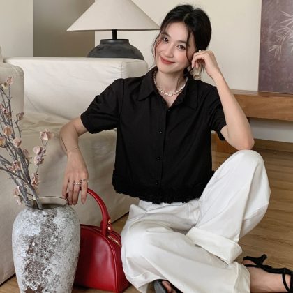 | nameOriginal | LS SHALIJIAJIA Spring New Solid Color Simple Lace Short Fashion Design Shirt 21658# |