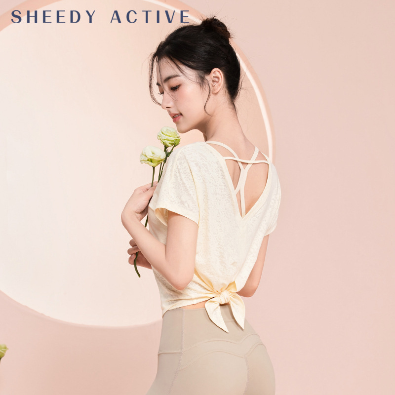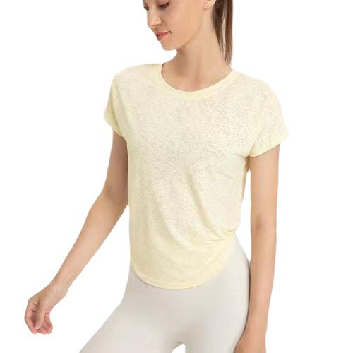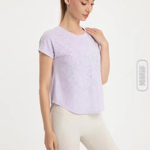 Lu Same Style Yoga Beautiful Back Top Casual Women's Fitness T-shirt Running Quick-drying Breathable Sports Short-sleeved Split Blouse