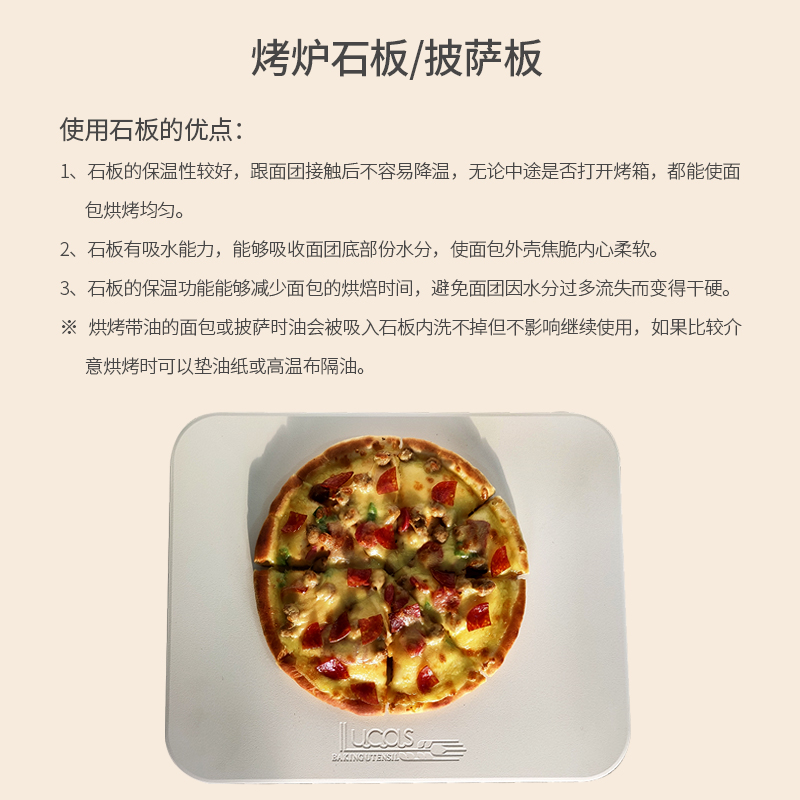 Lucas Oven Slab for Baking Ou Bao French Stick Pizza High Temperature Baking Cordierite Oven Household Steam Stone