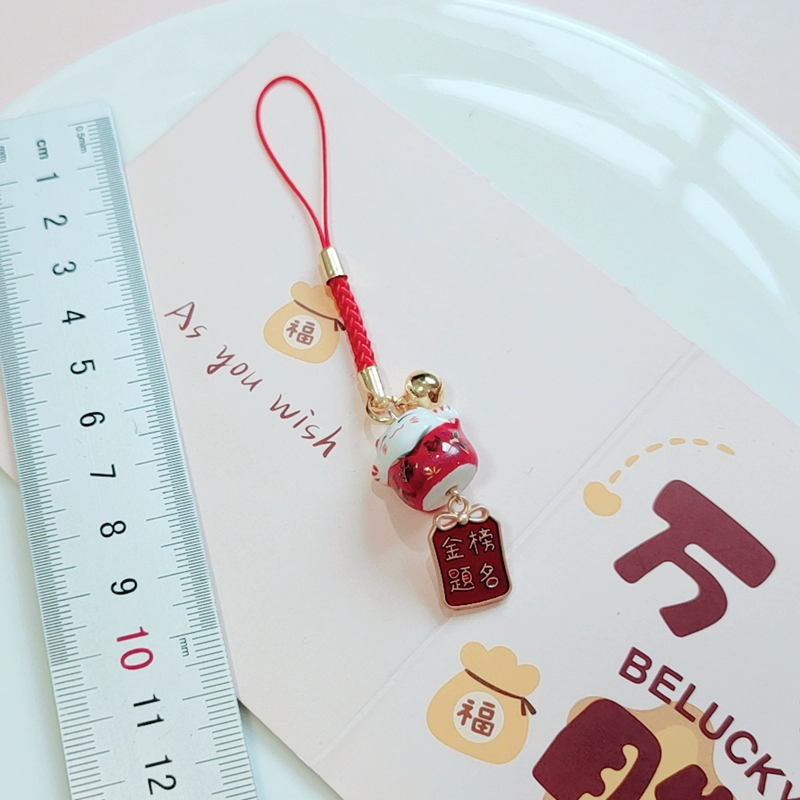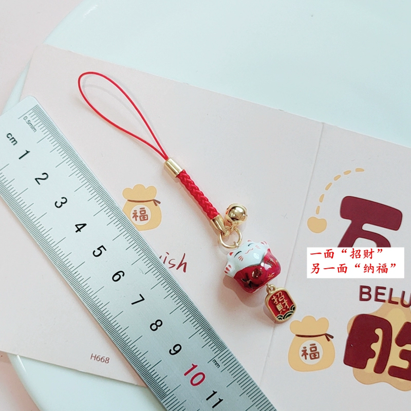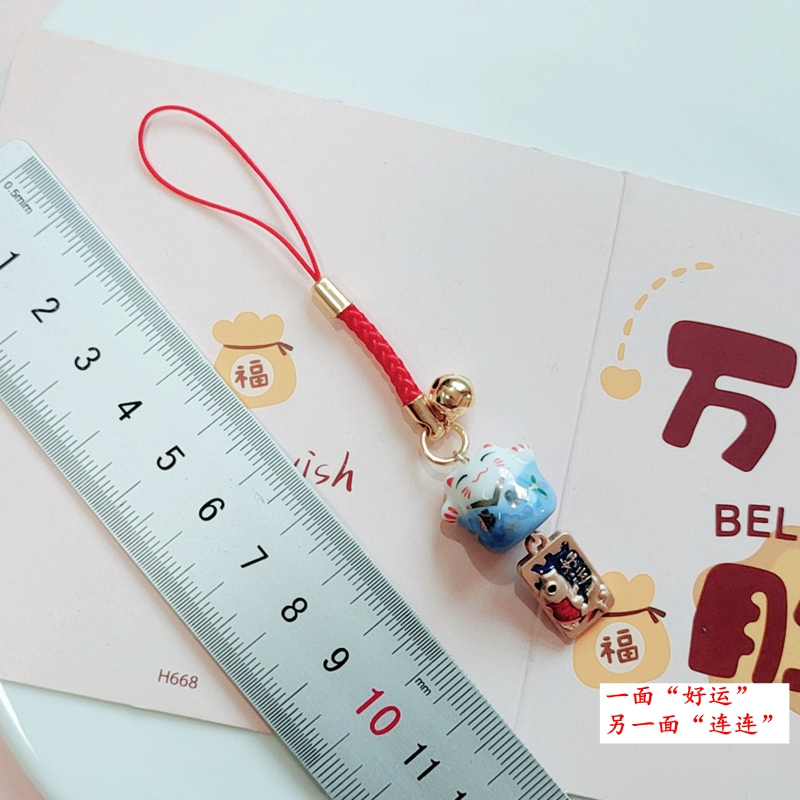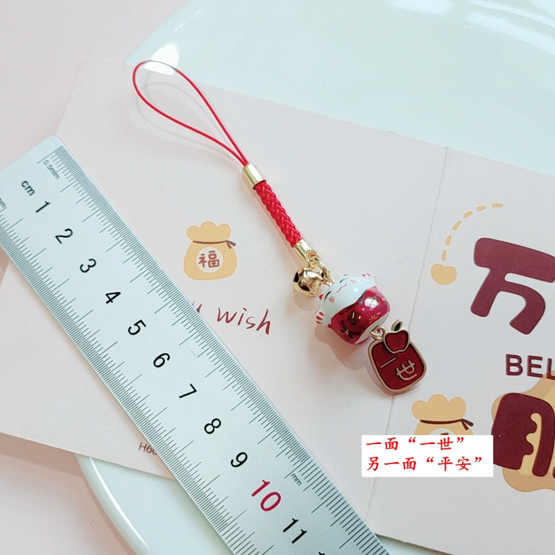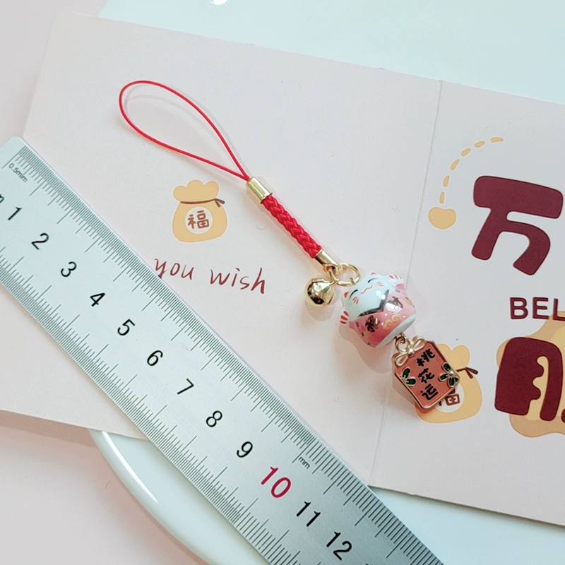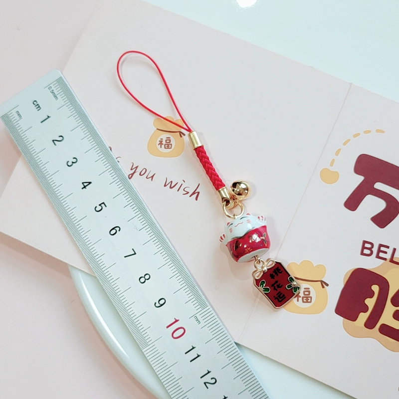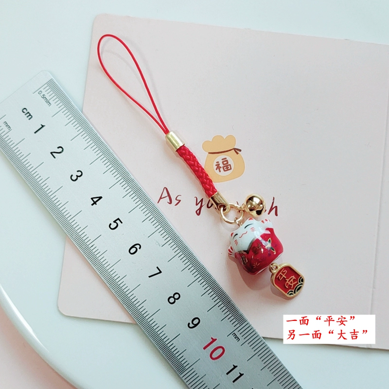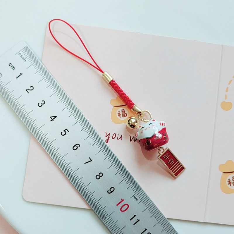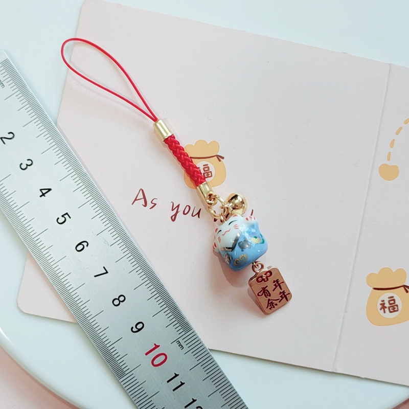 | nameOriginal | Lucky cat mobile phone lanyard mobile phone chain blessing beautiful words pendant cute keychain bag pendant |