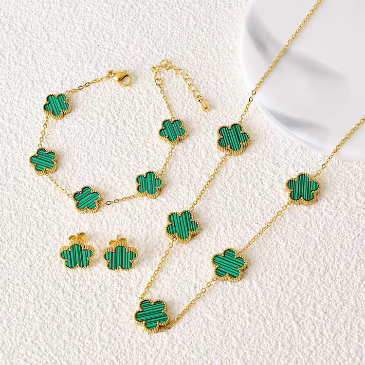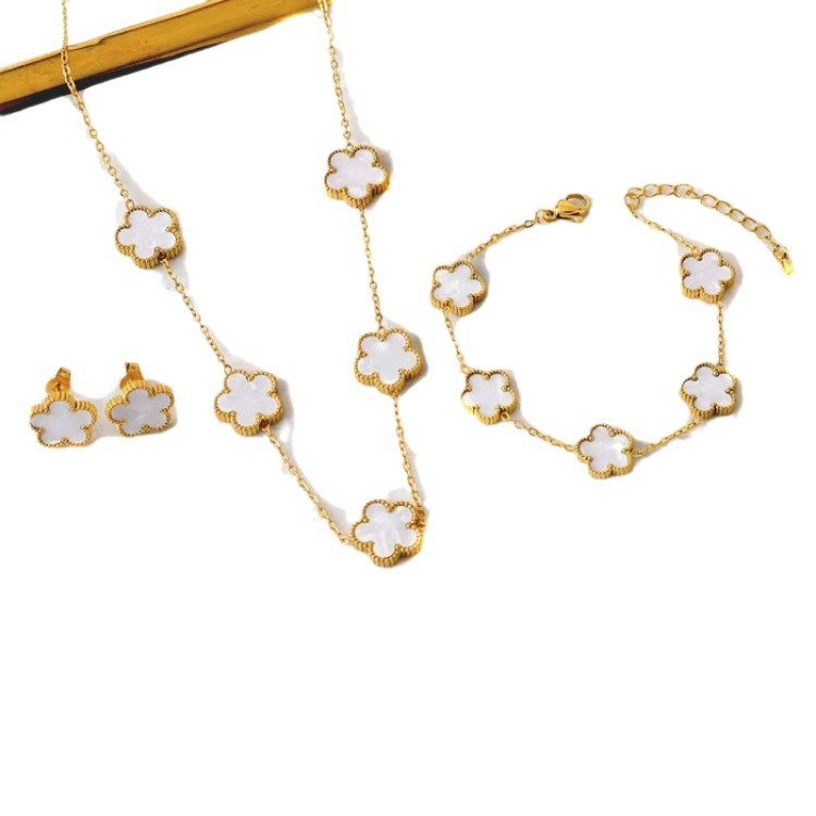 Lucky Five Flowers Four-leaf Clover Necklace Bracelet Earrings Niche Retro Grid Titanium Steel Earrings Girl Temperament Necklace