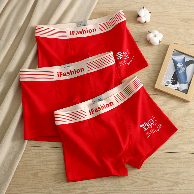 [Lucky meeting] Dragon year red wedding year men’s underwear wine Red men’s cotton breathable boxers
