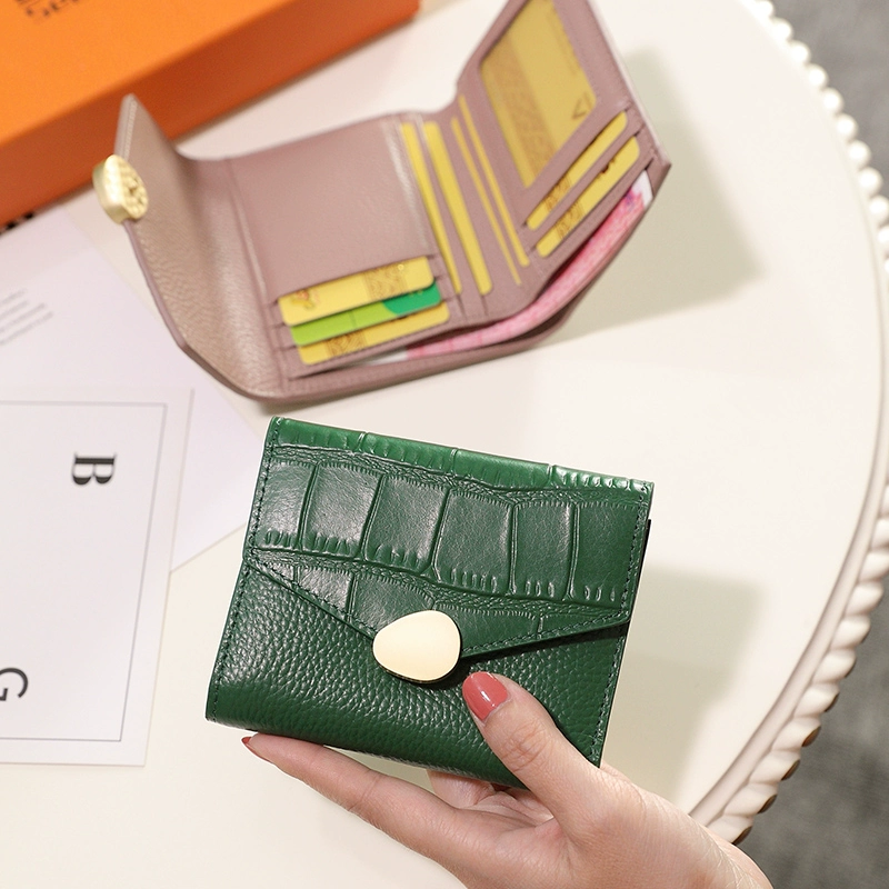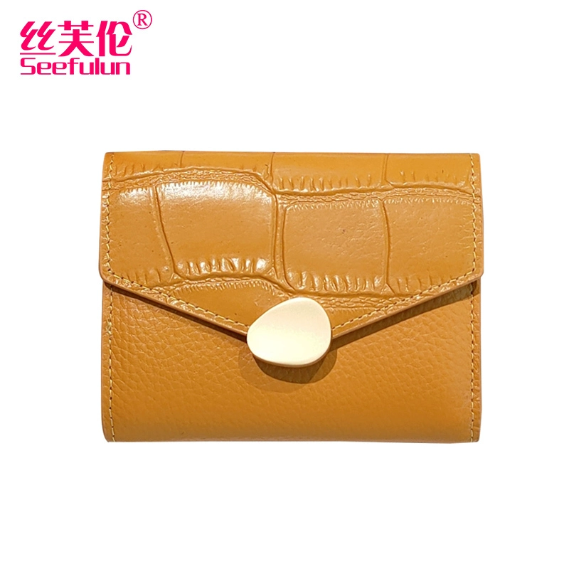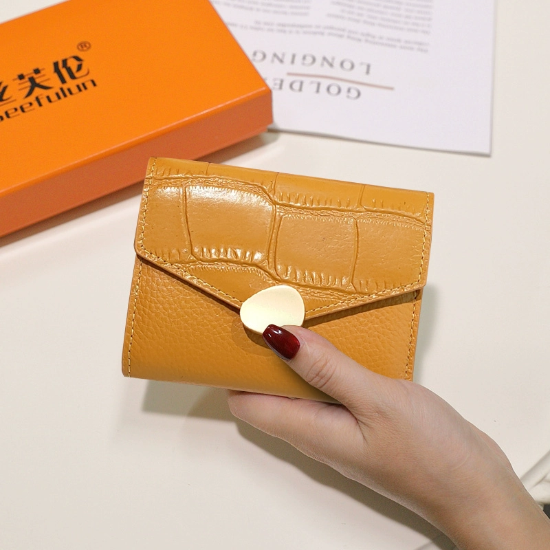 Lucky yellow genuine leather short small wallet for women 2024 new simple crocodile pattern folding wallet portable soft wallet