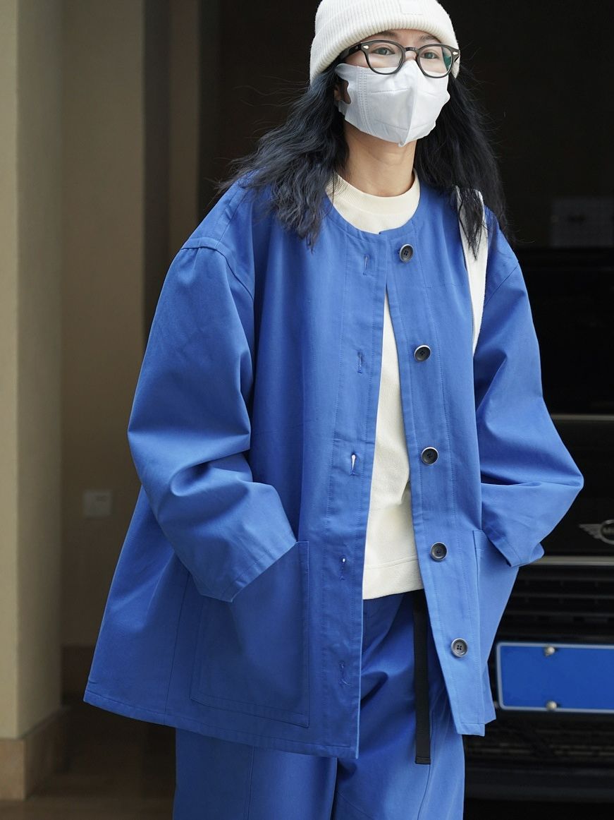 Lufu Spring New Japanese Tooling Design Crewneck Coat Loose Profile Simple Slim Casual Coat Women