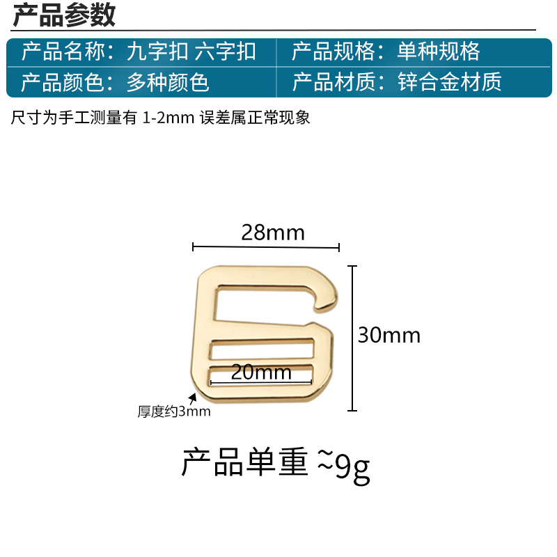 | nameOriginal | Luggage hardware accessories 6 points flat six-character buckle nine-character hook buckle belt buckle adjustment buckle inner diameter 2cm |