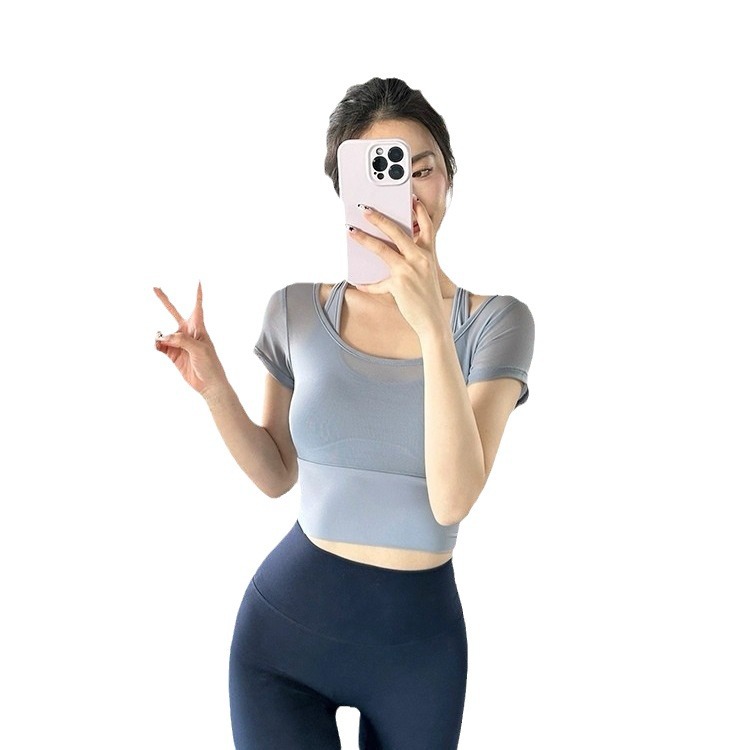 | nameOriginal | lulu瑜伽上衣女假两件带胸垫运动上衣高级感普拉提训练健身服夏季 |