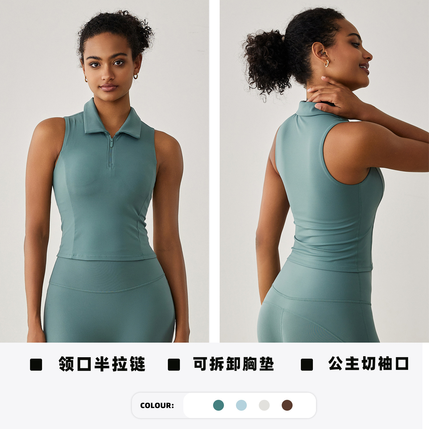 | nameOriginal | Lulu New Sports Vest Fitness Yoga Top Bra Lap Half Zipper Sleeveless Underwear with Chest Pad for Summer |