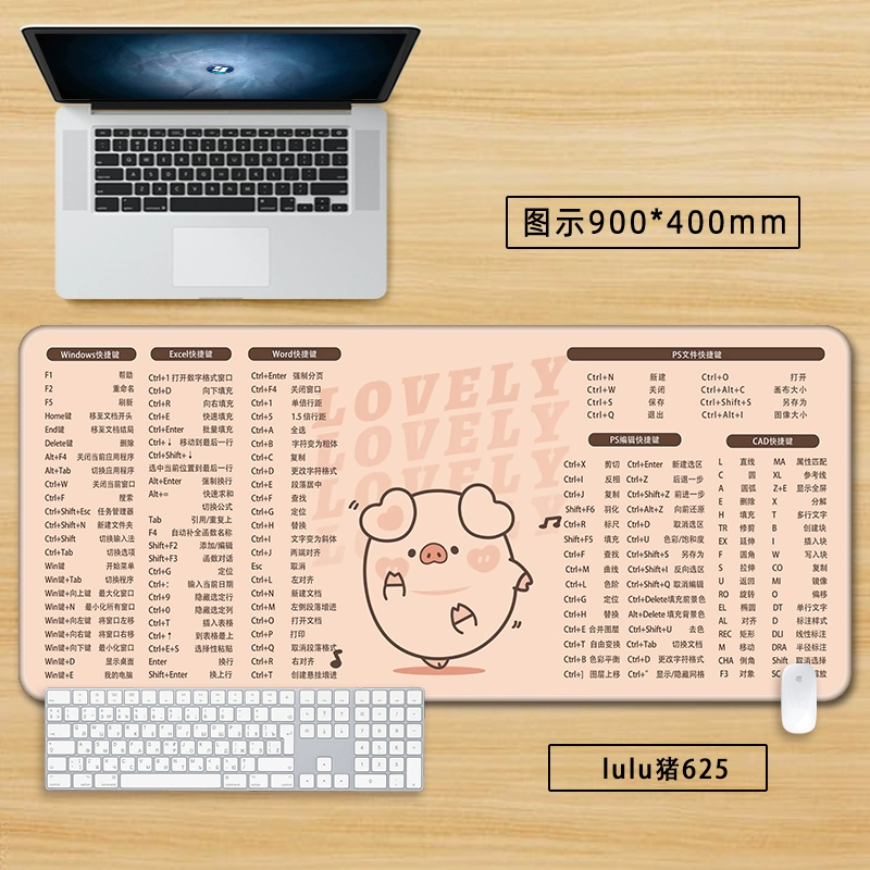 | nameOriginal | lulu pig mouse pad extra large shortcut keys office ps cute cartoon cad computer keyboard desk pad |